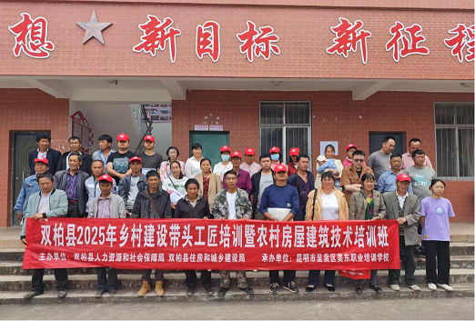 4月12日至4月17日,双柏县2025年乡村建设带头工匠培训暨农村房屋建筑技术培训班在双柏县法脿镇法脿社区顺利开班,参加培训学员共35人。