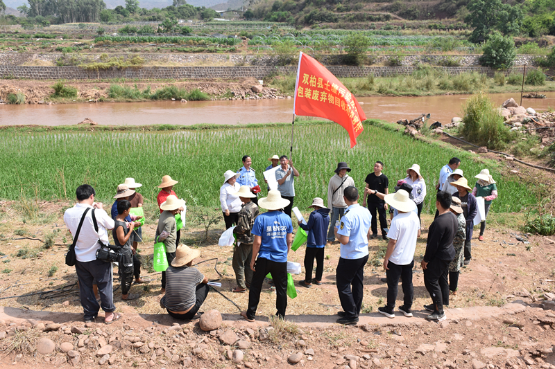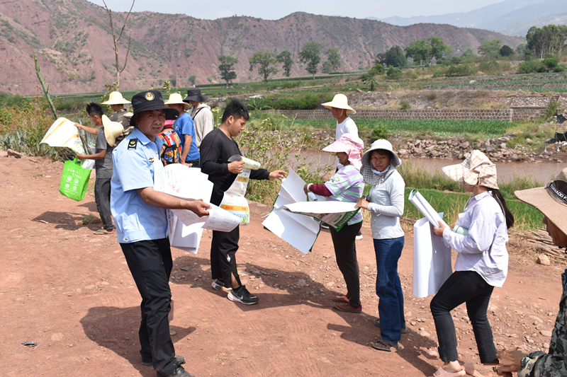 “各位父老乡亲,刚才我们沿着绿汁江边进来,大家都看到了在江边及你们的田间地头有废弃的农药包装袋、废薄膜、烂塑料瓶,这些都会污染我们的环境,污染我们老祖宗耕种了千百年的土地……”近日,在海拔800多米的大麦地镇埂井村的绿汁江畔,双柏县农业农村局的执法人员顶着30多度的高温和30多名群众在炎炎烈日下激情似火的宣传着,群众手里拿着花花绿绿的各种宣传单,聚精会神的听着,不时轻微的点头表示赞同,这是近年来双柏县持续开展土壤污染和农业包装废弃物整治宣传中最普通的一幕。