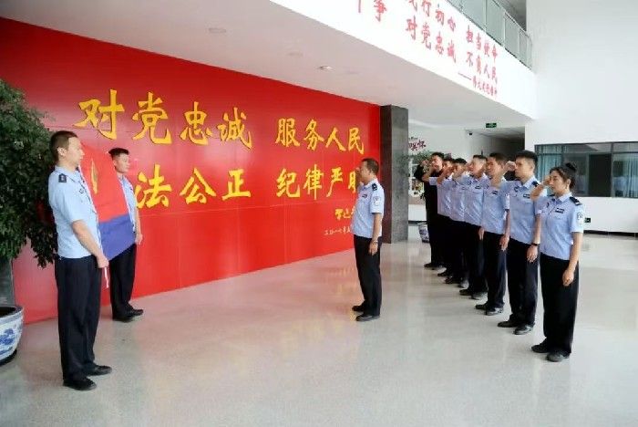 会议结束后,7名新录用民警面向警旗郑重宣誓。铿锵有力的誓言,表达了他们为党和人民无私奉献、为平安双柏建设贡献力量的坚定决心和崇高信念。