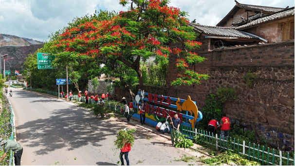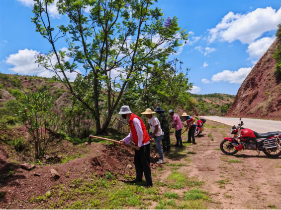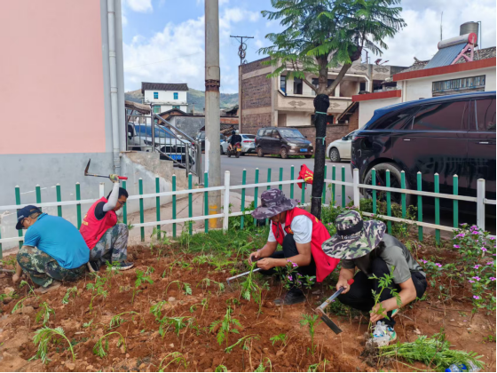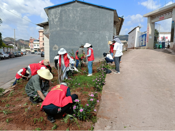 聚焦集镇闲置空地,在高速路入口、绿化带等地周围,党员干部、公益性岗位人员与群众志愿者密切配合,有序种植万寿菊,并划分区域管护责任,由专人进行护理,道路两侧闲置土地被充分利用,以点带面、全域开花。