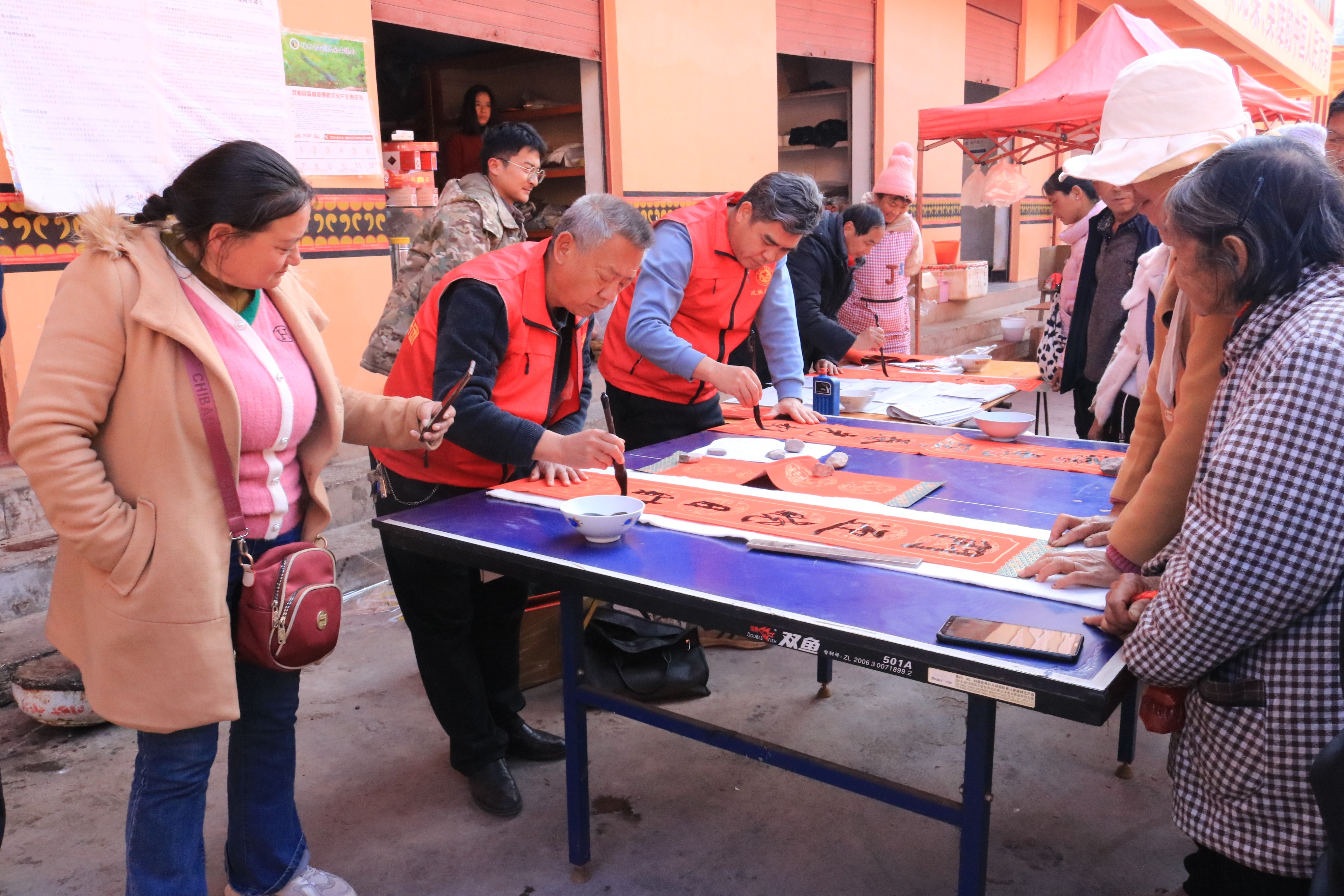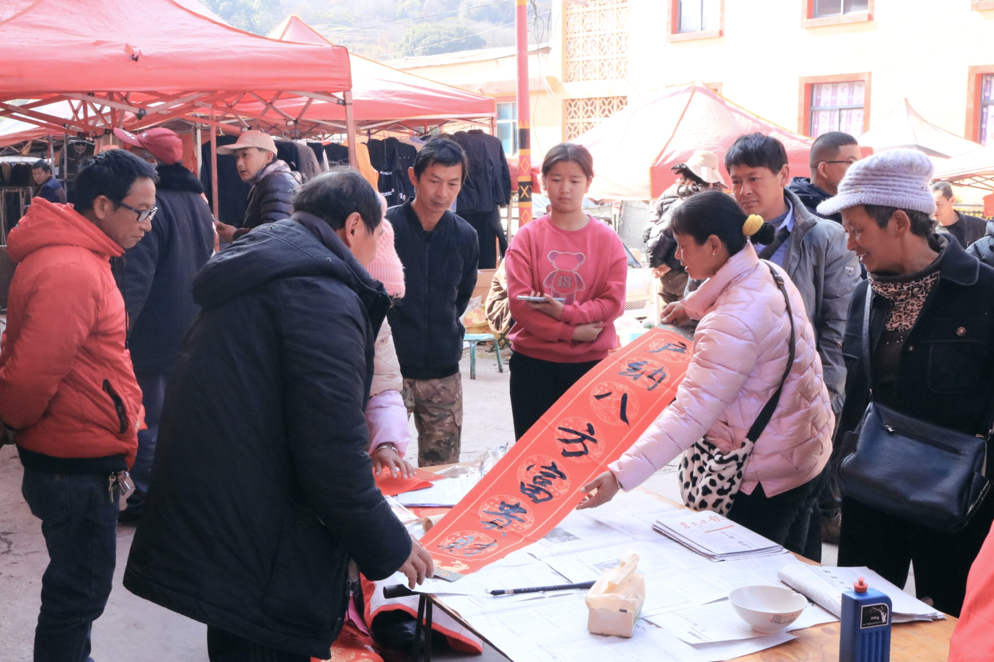 “老师们这个字写得是真好,太漂亮咯。”赶集的居民们拿着一副副红火的春联和“福”字,收获了今年的第一波“年货”,脸上洋溢着喜悦之情。
