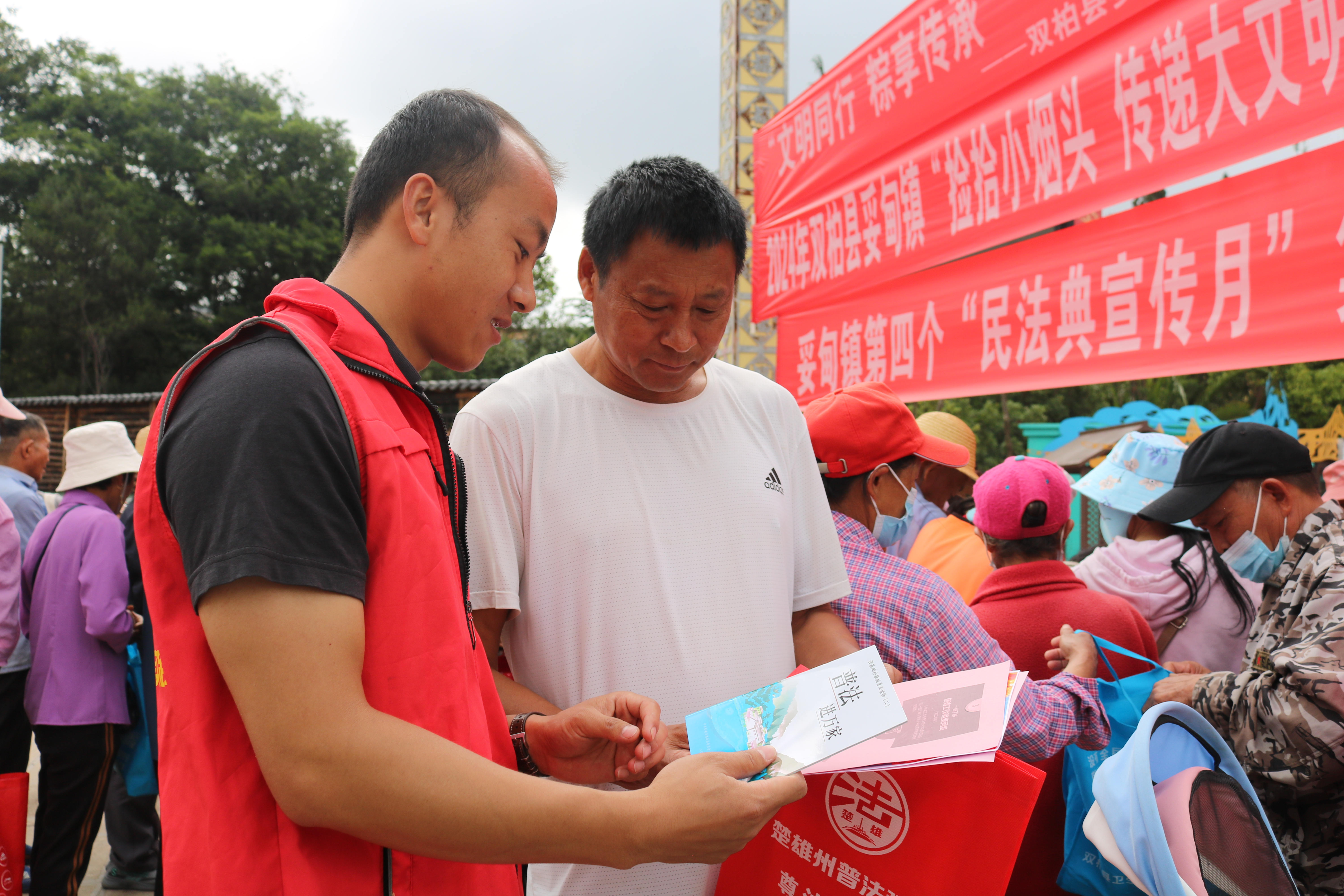 “大妈,我们在进行端午节的活动,需要捡够十个烟头才能兑换一个鸡蛋…”“大姐,这是我们普法宣传的单页,请您看一下,平时要多看法律知识,一定要谨防网络电信诈骗…”在查姆文化广场,妥甸镇新时代文明实践所和城市社区实践站正联合开展“我们的节日.端午”主题活动。