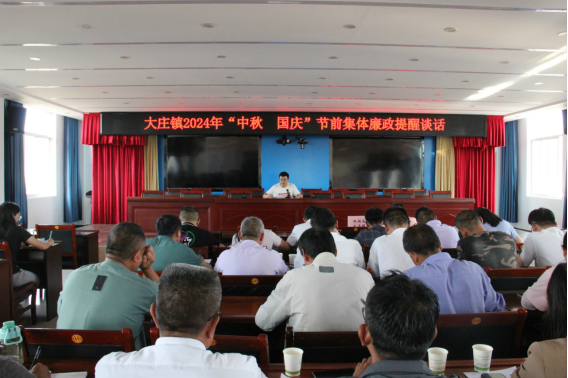 中秋、国庆双节将至,为营造风清气正的节日氛围,9月13日,大庄镇组织全体镇村干部开展集体廉政提醒谈话。