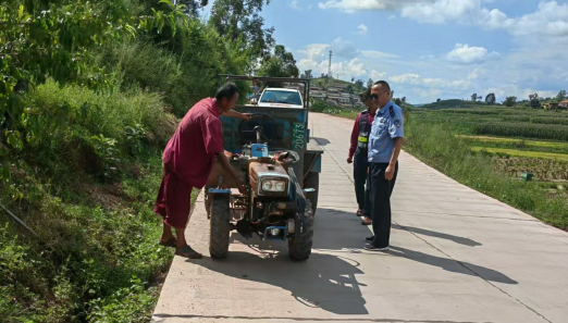安全引导“护”秋收。通过广播喇叭、村民微信群转发、田间地头指导、悬挂条幅等多种方式,广泛宣传农机安全注意事项,引导村民科学收贮,提高村民的禁烧意识和安全意识。