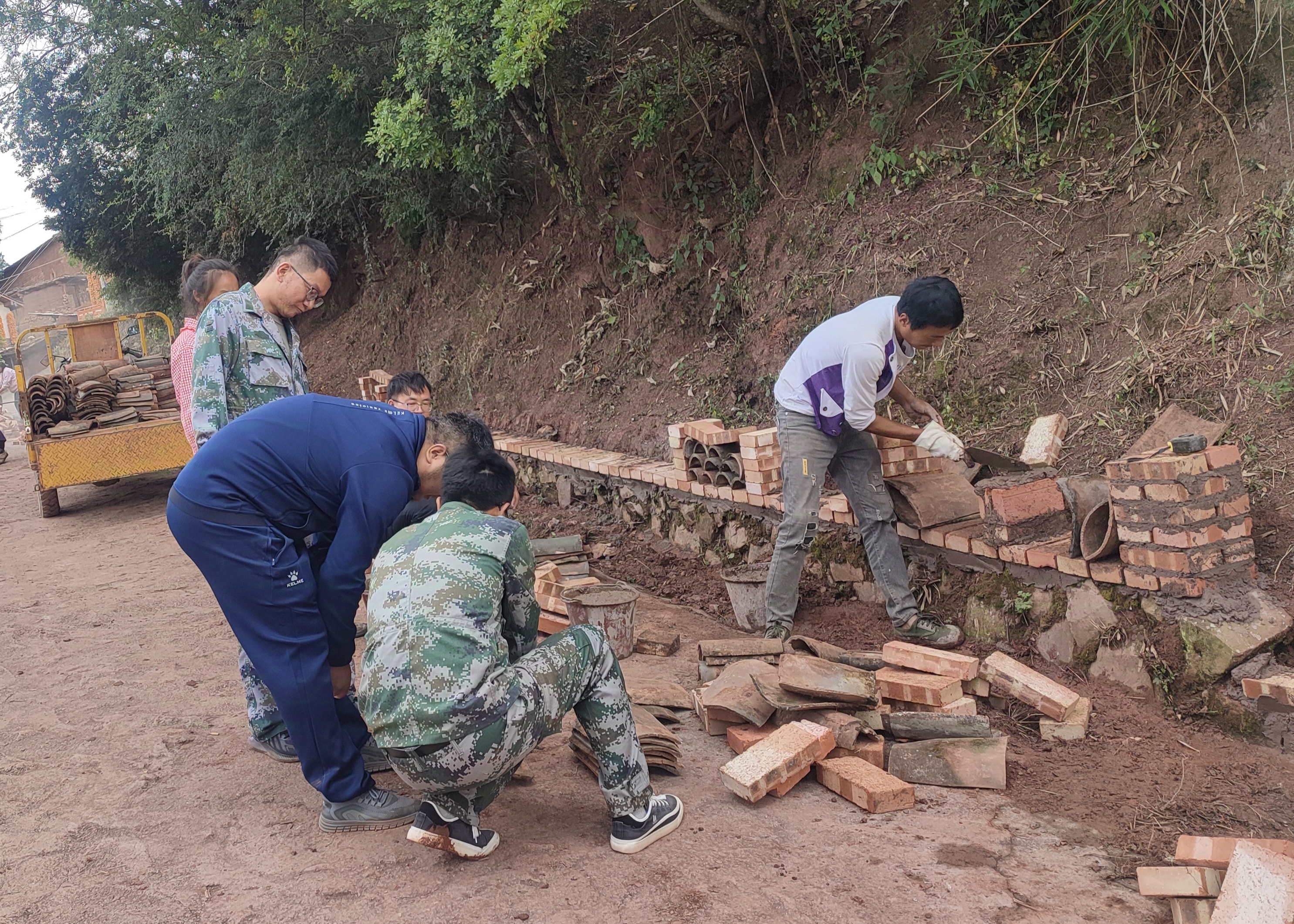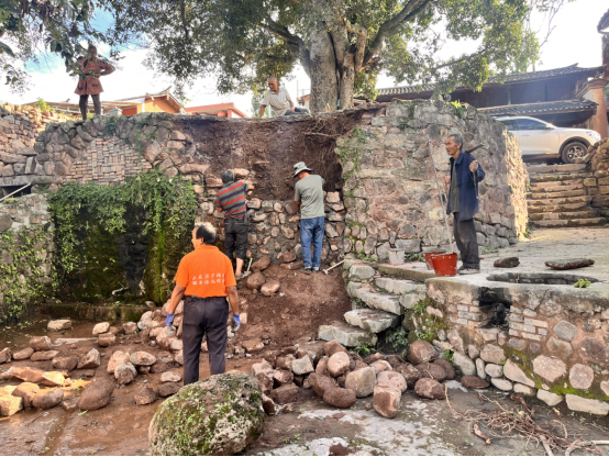 群众开着挖机、铲车,有技术出技术,有力气出力气,忙碌在村子的各个角落,在专班组的带领指导下,规划暗沟、镶砌挡墙、安装护栏、栽种花草……