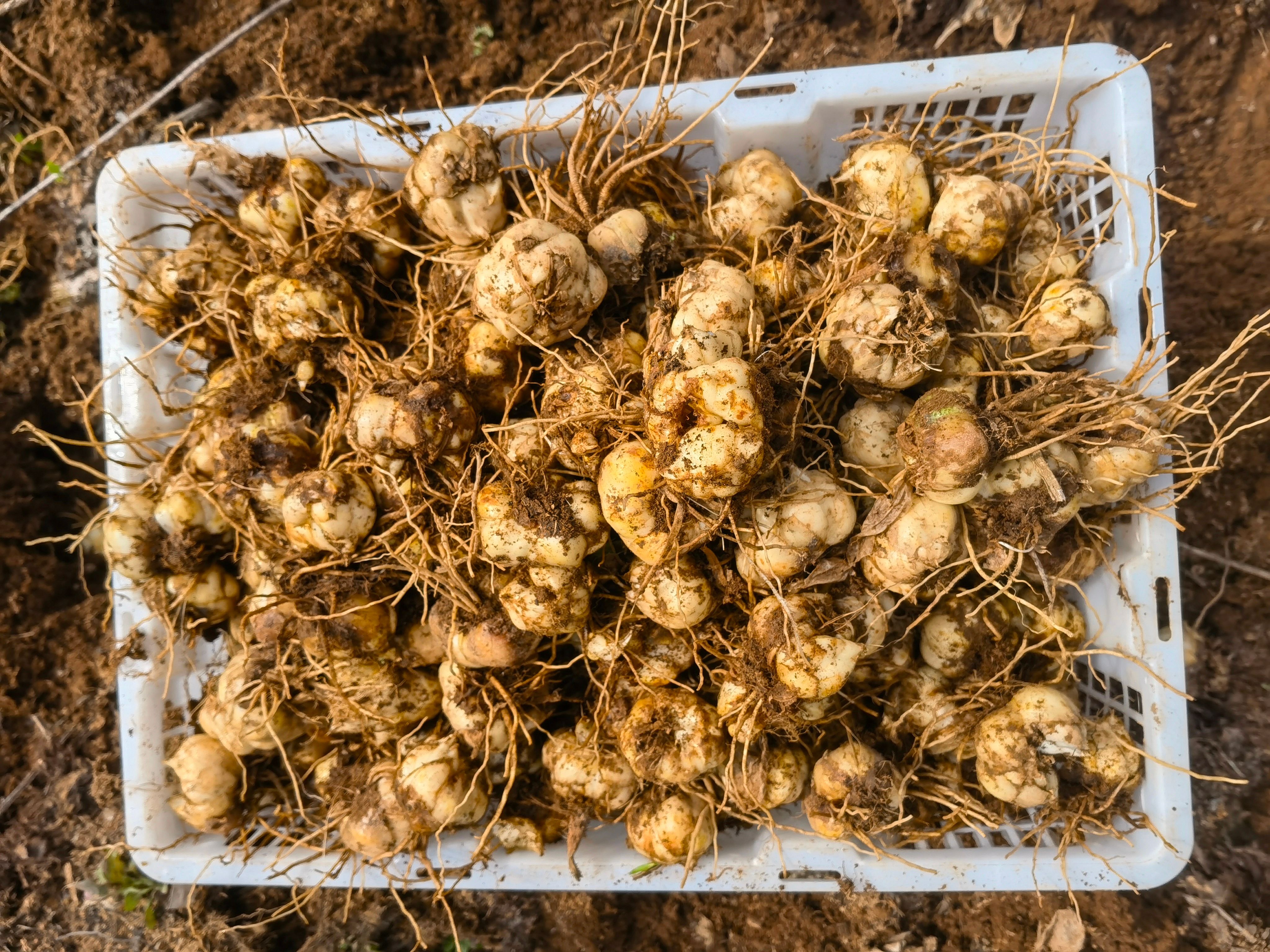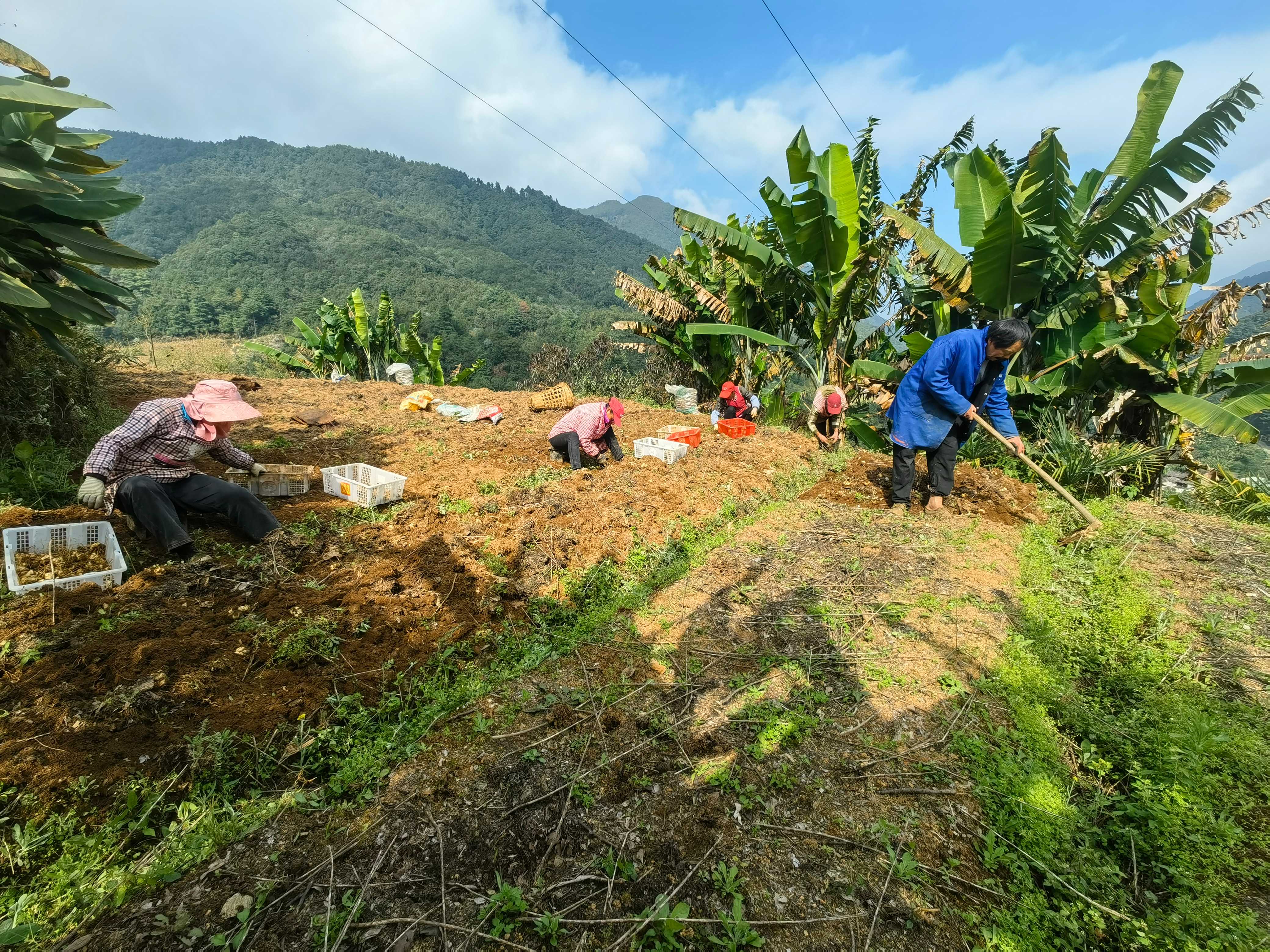 走进(石咢)嘉镇新厂村委会百合种植基地,整个基地呈现出一派丰收的繁忙景象。近30名村民热火朝天地忙碌着,他们熟练地将成熟的百合从土中挖出,去根、剥泥,再装筐、搬运、装车,一颗颗“致富果”和村民们奋力采收百合的身影,形成了一幅增收致富的动人图景。