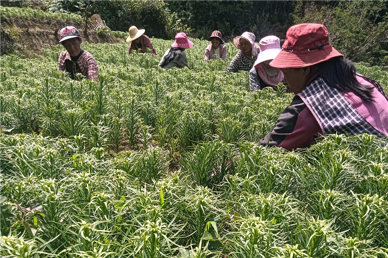 近年来,(石咢)嘉镇深入落实省、州、县大力发展中药材产业的重要部署,依托良好的生态、地理和气候等优势,通过招商引资、合作社流转闲置土地、引进企业田间收购等多项措施,大力发展中药材产业。随着特色百合种植产业的持续扩大,(石咢)嘉镇将立足各村实际,积极鼓励群众种植优质百合,发展壮大村集体经济,拓宽致富渠道,带领群众走出一条产业与美景相结合的增收致富新路子,为乡村振兴注入新活力,让这个不起眼的“土疙瘩”成为群众增收致富的“金疙瘩”。