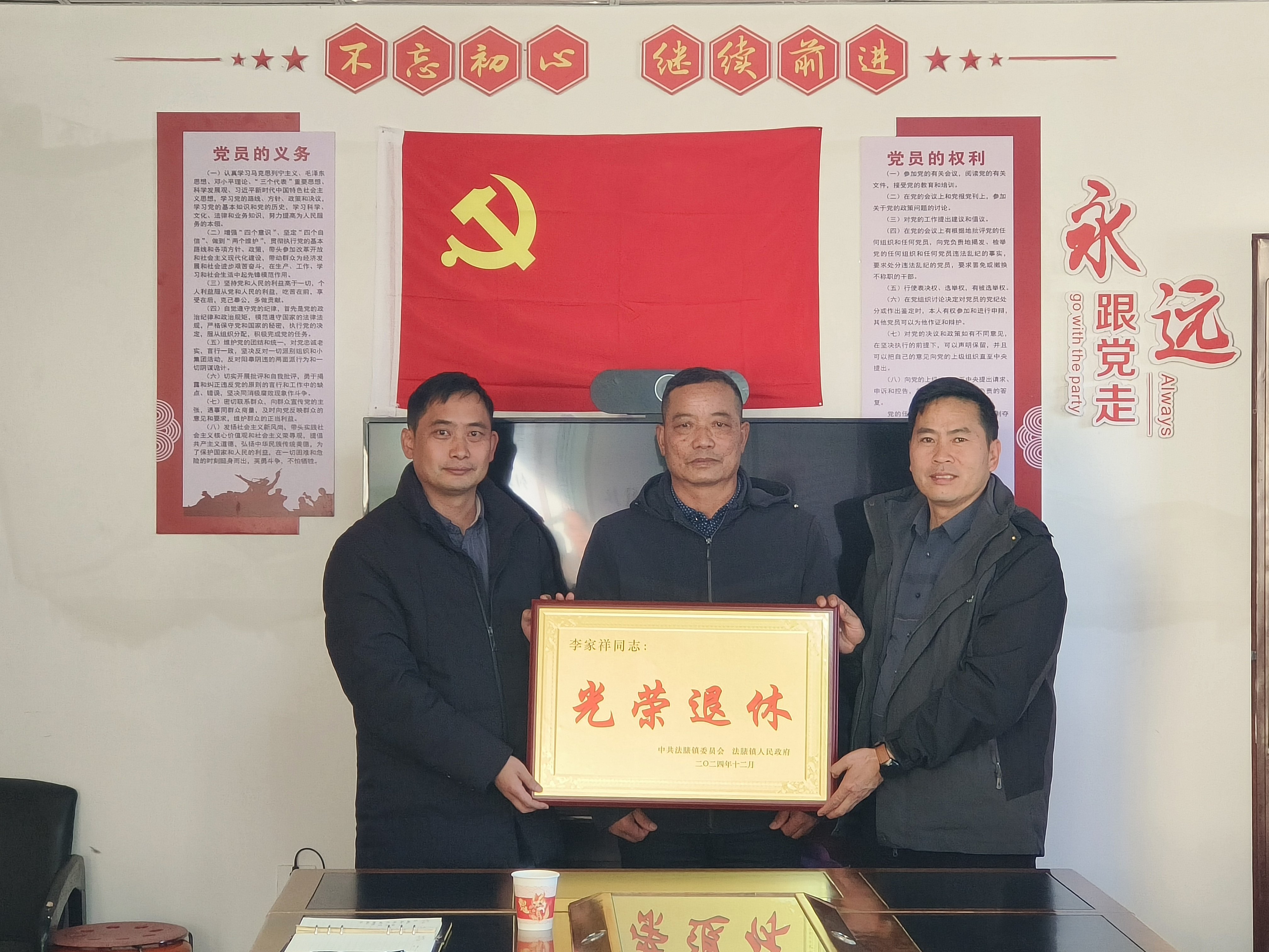 仪式上,镇党委委员、组织委员韩杞仕介绍了离退休干部工作履历情况,镇党委书记刘红波为退休干部颁发“光荣退休”纪念牌,希望老同志当好红色基因“传承人”,发挥好“传帮带”作用,带动广大党员干部特别是年轻干部赓续红色血脉、担当青春使命;当好改革发展“参谋手”,多为党委政府献智献力、献计献策;当好社情民意“调研员”,主动和百姓拉家常,收集群众意见建议积极反映,助力基层共建共治共享。