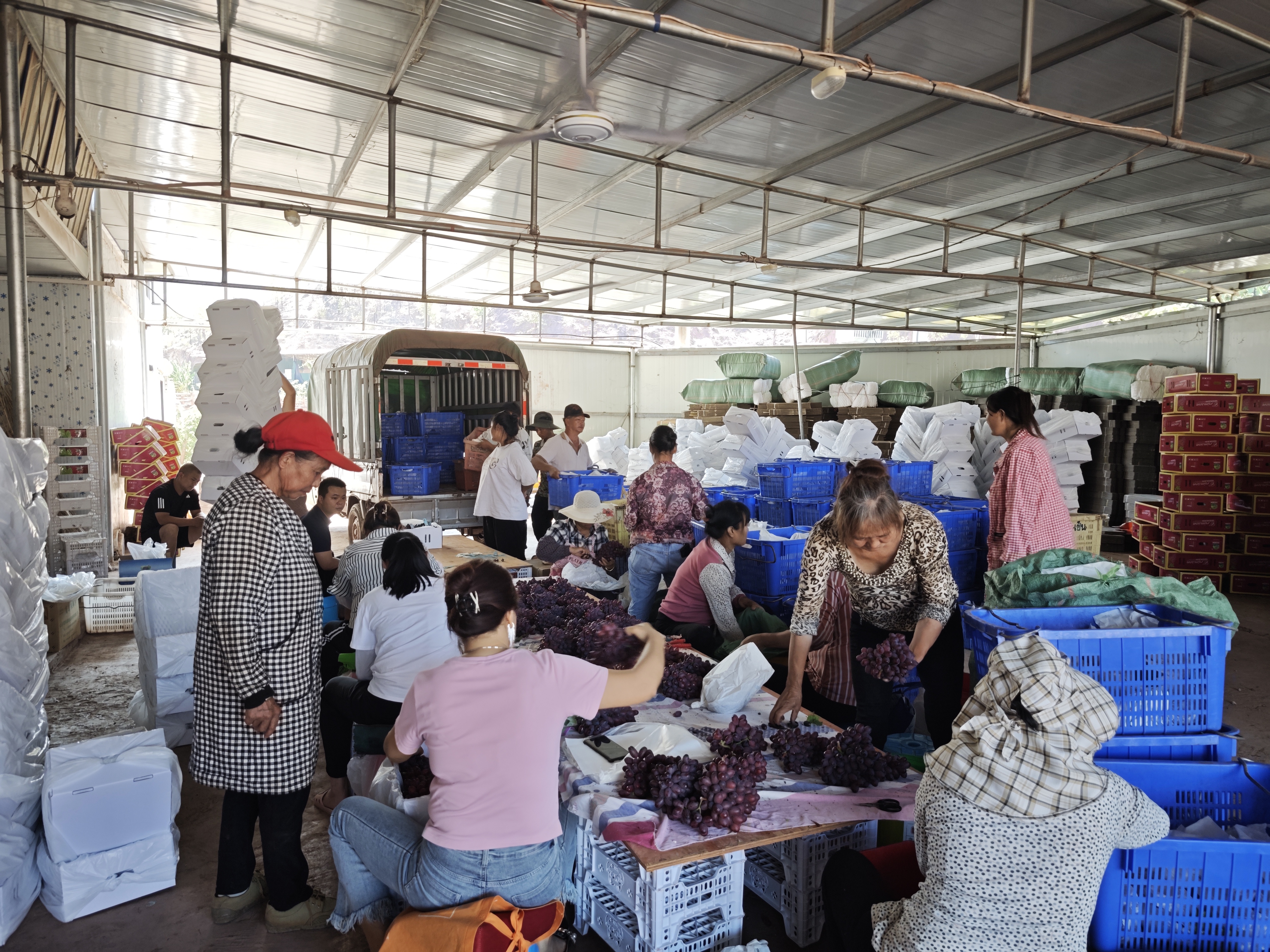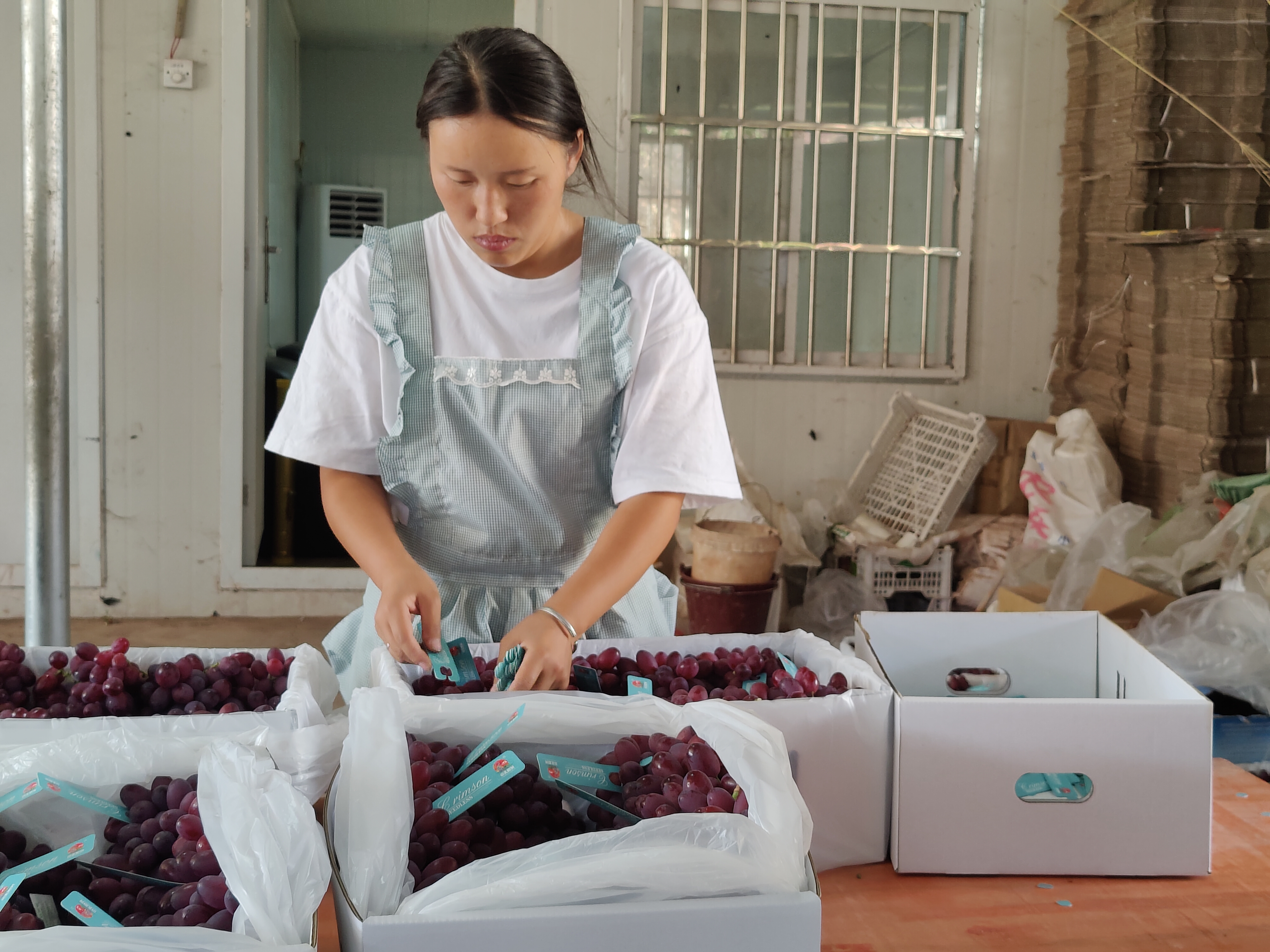 据基地负责人廖学章介绍,新兴引进的“大粒无核”葡萄品种每亩产量可达2.5—2.8吨,以48元每公斤的收购价,今年9亩葡萄的收益预计可达140余万元。当下,葡萄采摘包装车间新增固定就业岗位8个,每日吸纳阶段性零工30余人次,日薪130-160元不等,提供食宿。当前距离葡萄采收期结束还有一个多月,用工需求还将大幅增加,切实为周边群众提供更多就业机会,带动地方经济发展,促进群众增收致富。