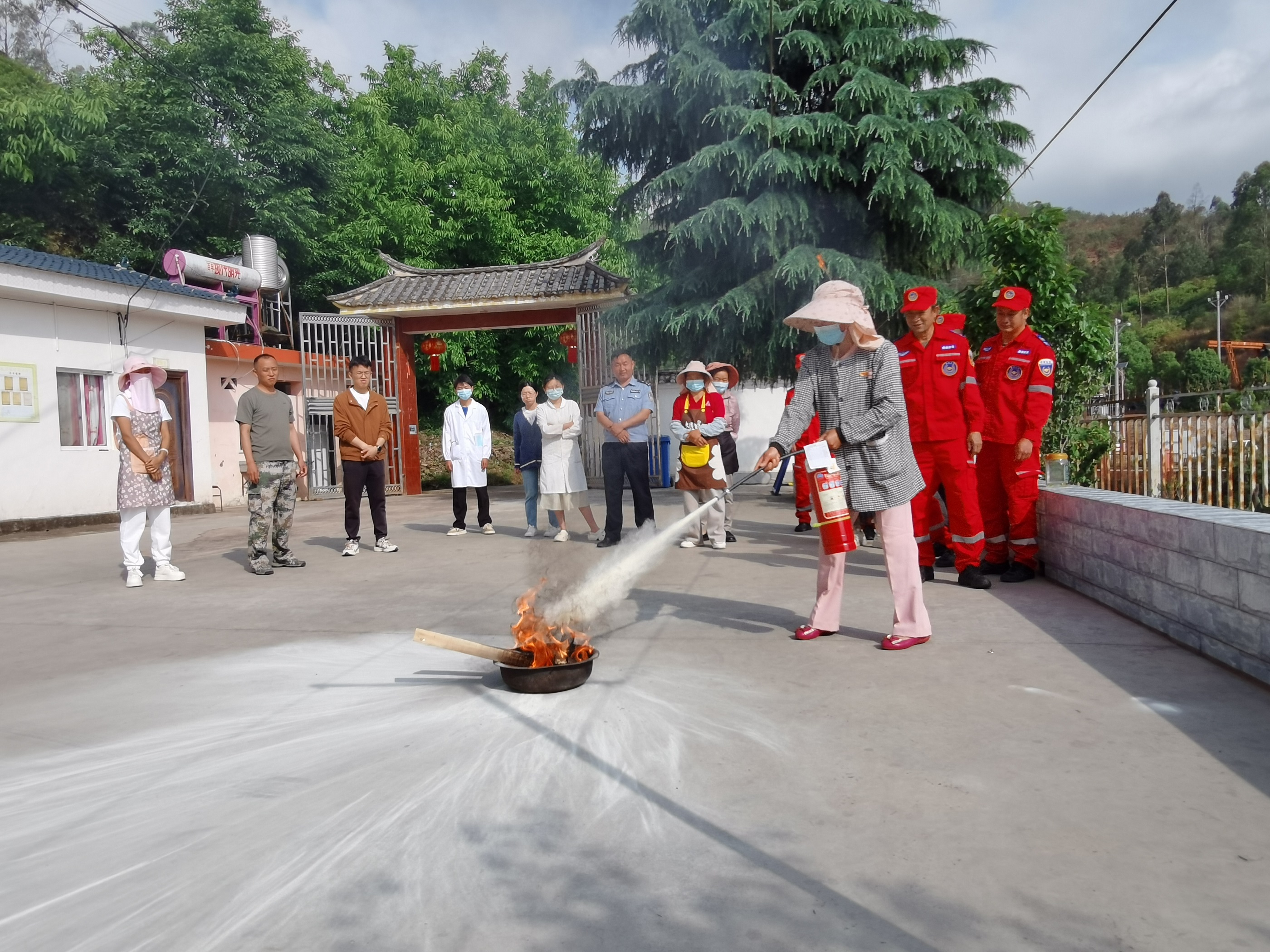 实战演练强本领,以"练"筑防保平安。“大家都知道灭火器怎么用吗?我将灭火器的使用步骤总结为摇、拔、握、瞄、压、扫,方便大家记忆和掌握。”法脿镇应急队员正拿着小喇叭普及灭火器知识。法脿镇立足实际,开展消防安全、防灾减灾、地质灾害抢险应急等一系列应急演练,通过组织严密、保障有力、有条不紊的演练活动,检验应急预案的可行性、应急队伍响应的及时性、部门联防联控处置的有效性,进一步提高群众自救防范能力。
