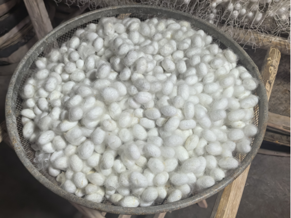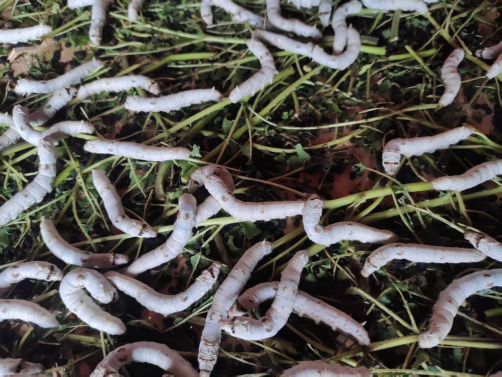 当清晨的第一缕阳光洒落在大庄镇柏子村村委会三岔河村时,蚕农们已经开始忙碌起来,在翠绿的桑树间,熟练地采摘着叶片,为合作社的蚕宝宝们准备早餐。走进三岔河村蚕桑养殖厂房里,竹匾整齐排列,上万只蚕宝宝正趴在竹匾上“沙沙”啃食新鲜桑叶,雪白的蚕身随着咀嚼轻轻颤动,编织着增收致富的新希望。