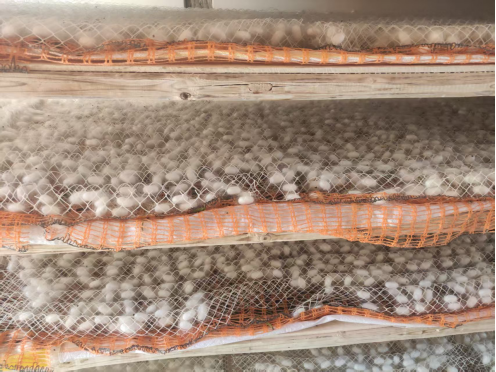 “蚕茧经水煮、剥开、叠加、晒干后,妇女们将洁白柔软的蚕丝均匀拉开,再一层又一层交叉层叠,套上被套,用针线固定好线位,一床桑蚕丝就完成了。我们还能根据客户的需求制作双人被和单人被,没有现货只能提前预订,一床蚕丝被大概3-4公斤左右,600元/公斤,一年至少都能卖10多床。”
