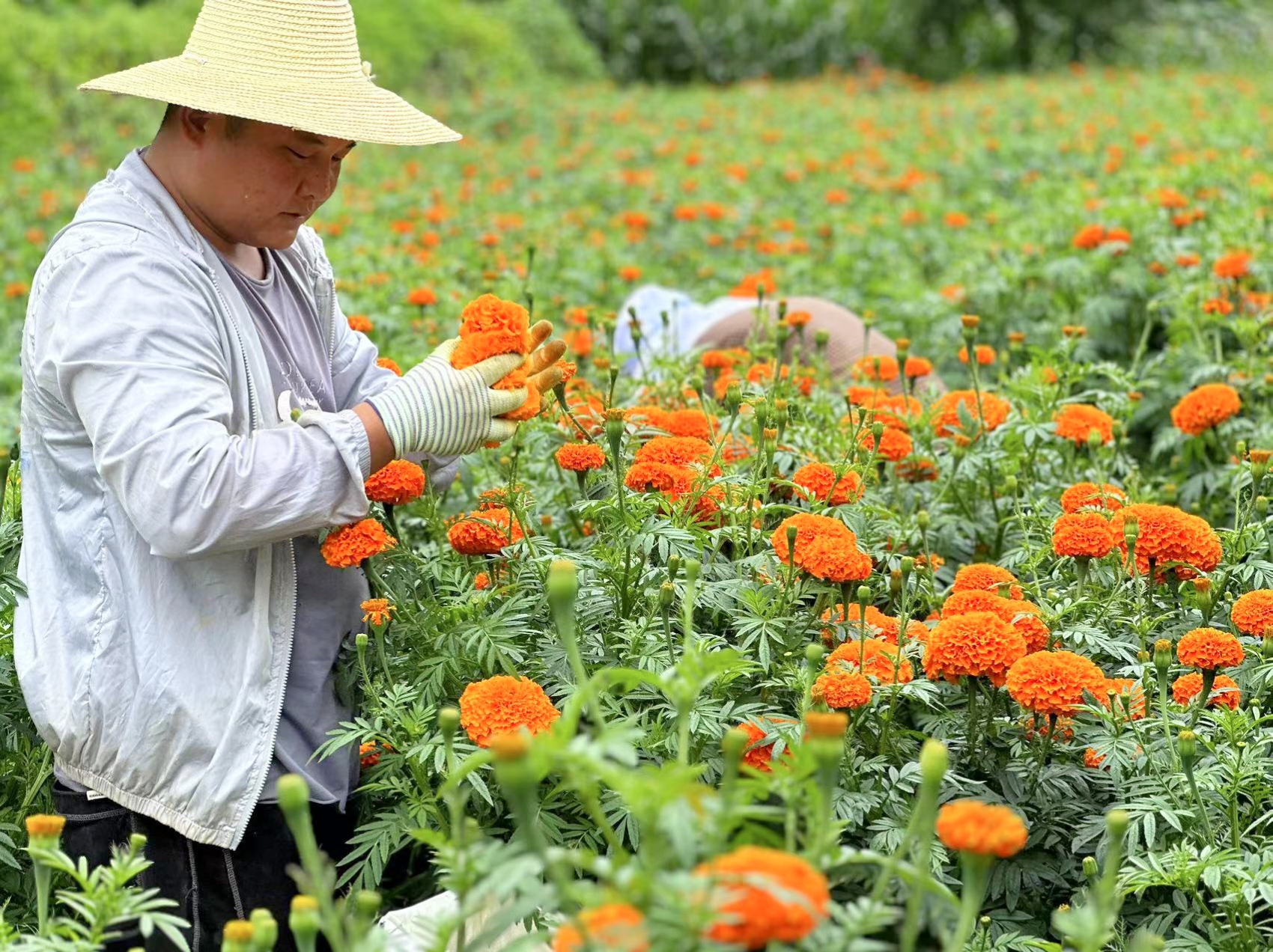 近年来,法脿镇因地制宜优化产业结构,注重特色产业深度发展,采取“公司+农户”的形式发展种植万寿菊,积极探索推广“万寿菊+美丽乡村”“万寿菊+集体经济”“万寿菊+富民增收”等“万寿菊+”种植模式,发展多元增收路径。2024年发展万寿菊种植户700多户,其中种植大户10户,实现户均增收8000元,2025年全镇推广种植面积达5000亩。