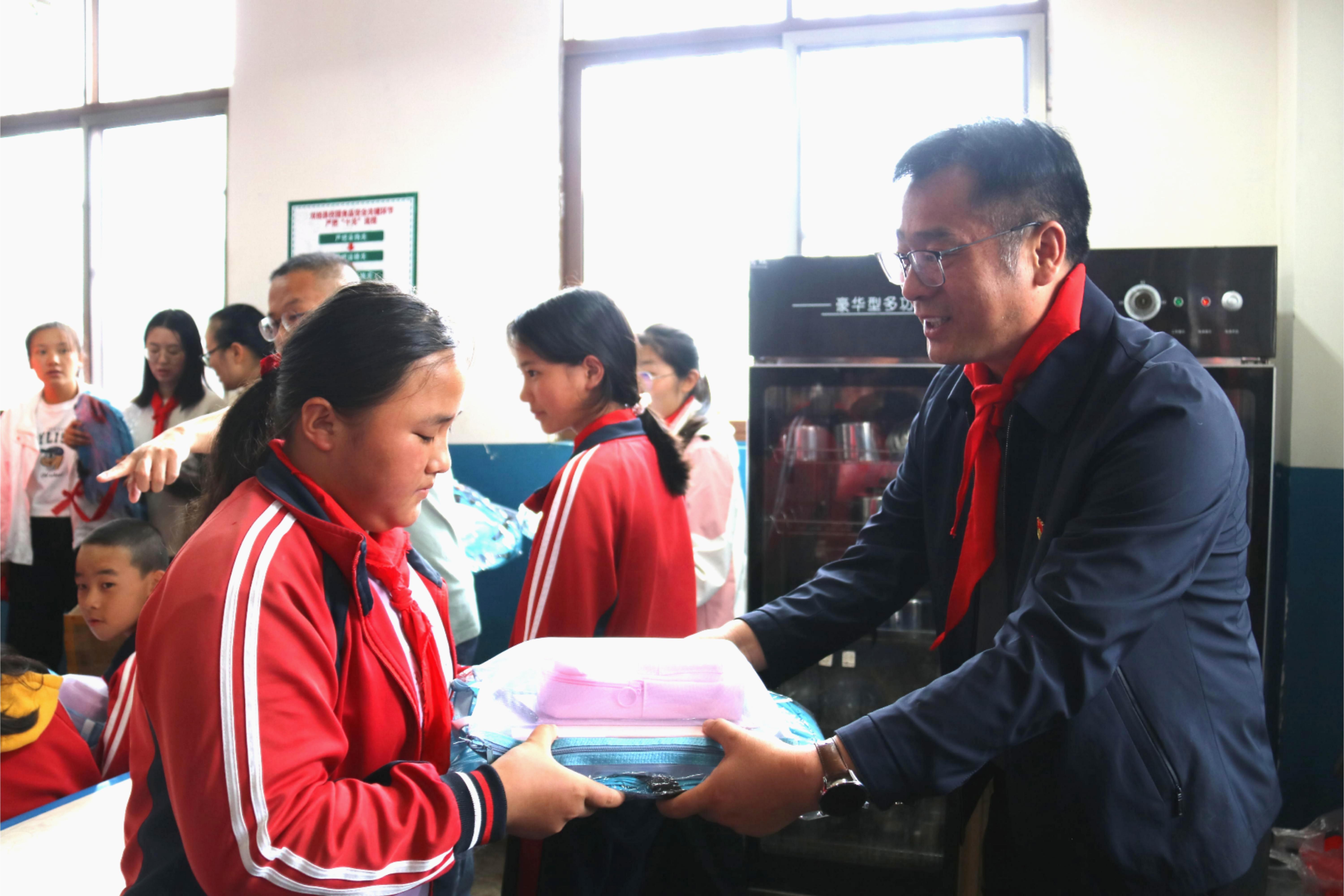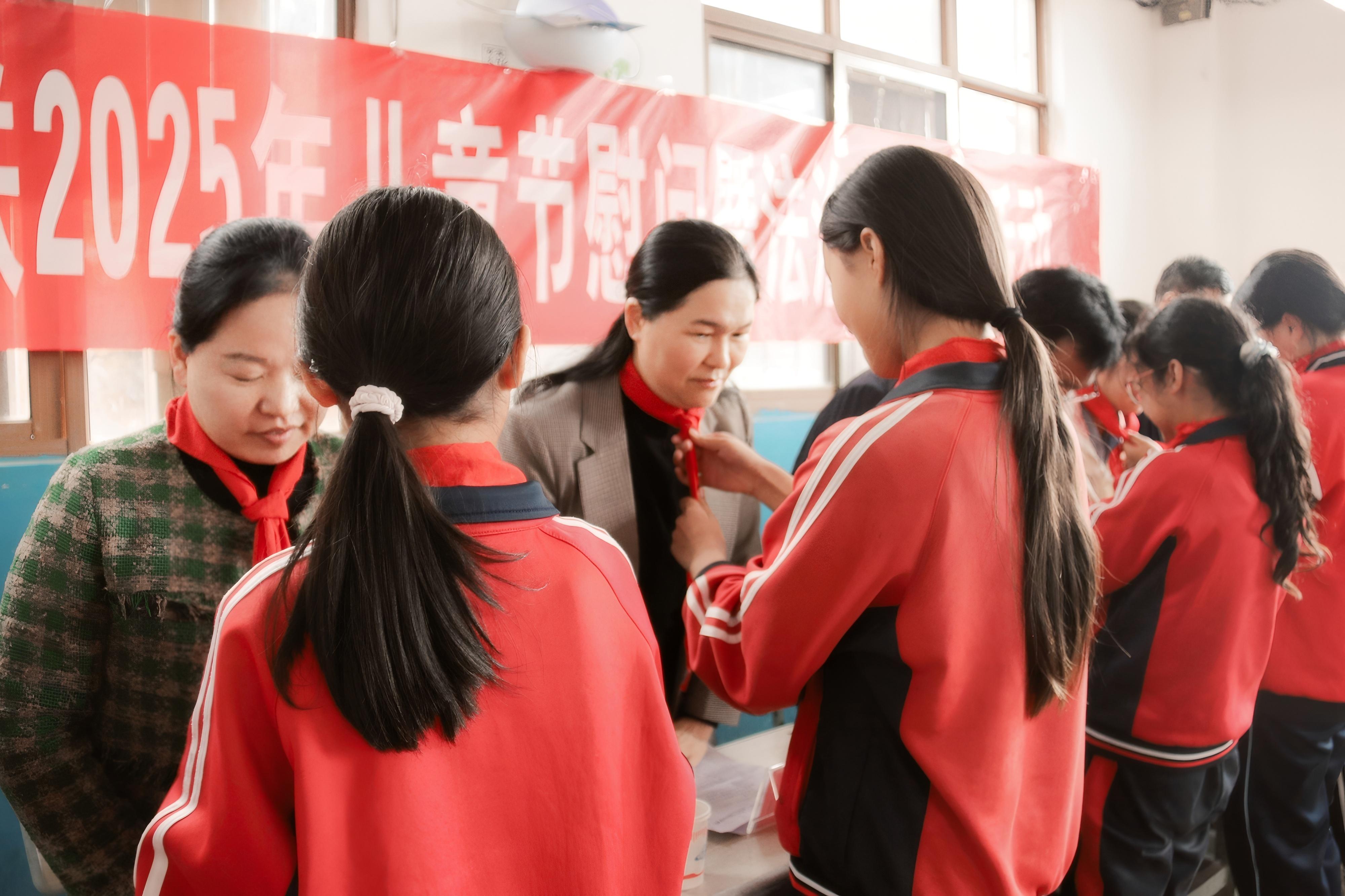 慰问组详细地了解学校教学条件以及学生们的学习生活情况,对老师们的艰苦奋斗精神给予肯定,并亲切地鼓励孩子们保持积极乐观的心态,在学业上勤奋进取、立志成才,以阳光向上的精神风貌迎接未来,孩子们也高兴的为参加活动的领导佩戴红领巾,表达最诚挚的感谢。