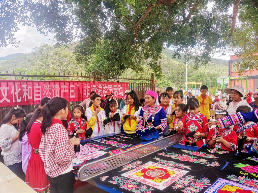 大麦地镇少数民族人口占总人口94%,国家级非遗传承2人、省级1人、州级7人,民族文化绚烂多姿,《查姆》、小豹子笙、陀螺、堆绣、啊噻调、四弦舞等非遗项目熠熠生辉,而传统文化的传承离不开薪火相传的坚守与代代守护的担当。大麦地镇以“非遗进校园”为抓手,以“老带新传承托举”为方式,充分利用每天最后一节课的时间,结合学生的特长和兴趣,为男同学开设打陀螺课程,为女同学开设彝绣课程,向学生传授打陀螺的技巧和彝绣的针法,让传统文化在校园落地生根。