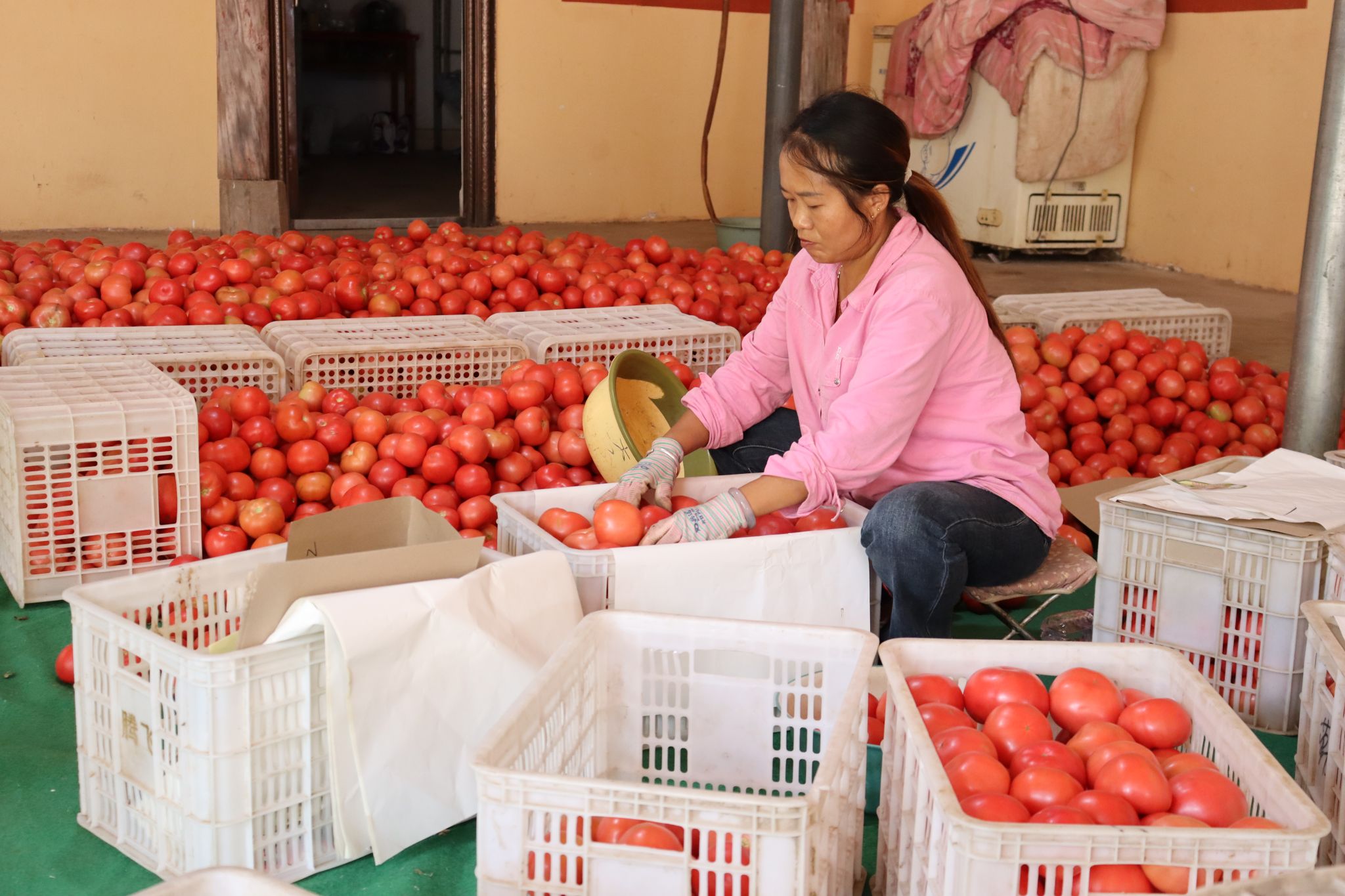“得益于法念村较高的海拔和充足的光照、水源,加上引进优质品种,科学田间管理,种植出来的西红柿不仅品质佳,还能避开大批量集中上市时间,价格比旺季时高出不少,实现了以‘时间差’换‘效益差’,群众种植信心很足。”谈及西红柿错峰上市效益好的秘诀,法念村党总支书记李联飞介绍道,目前法念村带动102户农户种植西红柿500余亩,收购商在法念长期驻点收购,种植户销路不用愁,群众还可以通过土地流转、就近务工等方式增加收入。