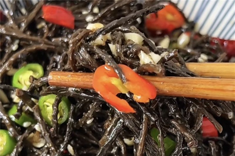 新鲜的核桃仁,不仅可以直接生吃,在当地也常被用作凉拌。摒弃了复杂的烹饪,直指食材的本真滋味,是一场发生在舌尖上的香脆与清爽的完美邂逅。白净的瓷盘里,奶白色的核桃仁泛着油润的光泽,如同散落的玉石籽料。其间点缀着鲜红的辣椒、翠绿的香菜段或葱花,有时还会撒上些白芝麻增香。整体色泽明快、清新自然,口感脆嫩。