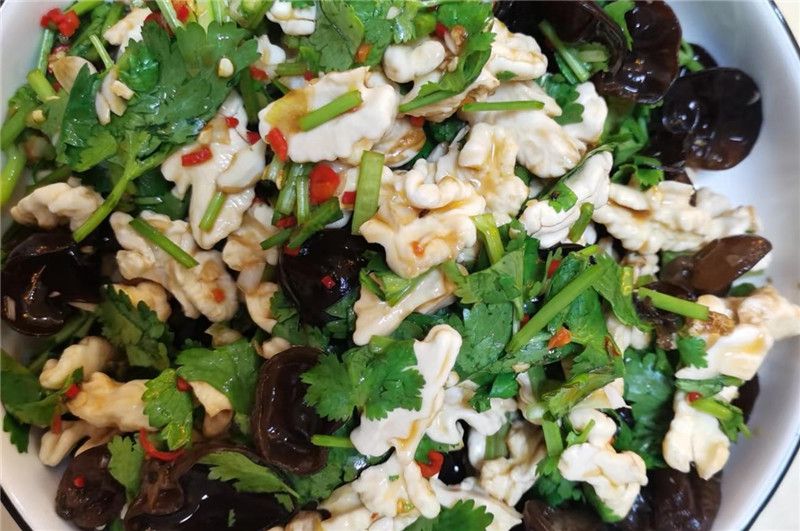 凉拌核桃花只需要辅以糊辣椒、花椒油、食盐、蒜末、芫荽、柠檬汁或食醋等一同凉拌,酸辣开胃,鲜脆爽口,是𥔲嘉当地农家最经典的春季开场菜。
