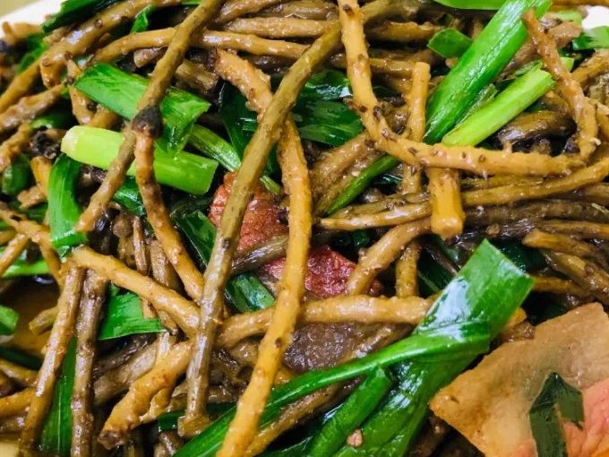 核桃花炒腊肉不需要特别的烹饪手法,也不需要华丽的搭配。腊肉自带的咸鲜,提供了扎实的底味;核桃花的微苦与回甘则巧妙地解了腻;干辣椒的香辣和蒜苗的辛香进一步丰富了味觉体验。所有味道在口腔里和谐共舞,咸、香、辣、鲜层次分明,将山野的清新与灶台的烟火气完美融合。