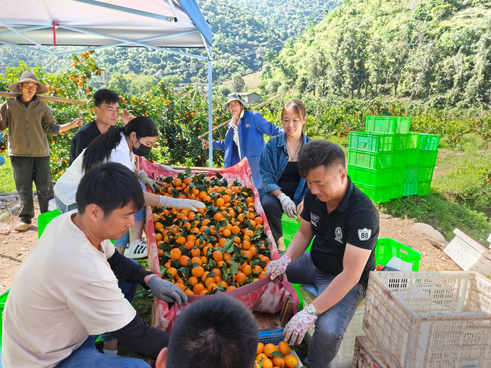 金秋时节,双柏县大庄镇漫溪园柑橘基地迎来一年中最美的丰收季,连片的橘树顺着田垄铺成绿色的海洋,金灿灿、黄澄澄的金秋砂糖橘挂满枝头,宛如无数个小灯笼点亮果园。