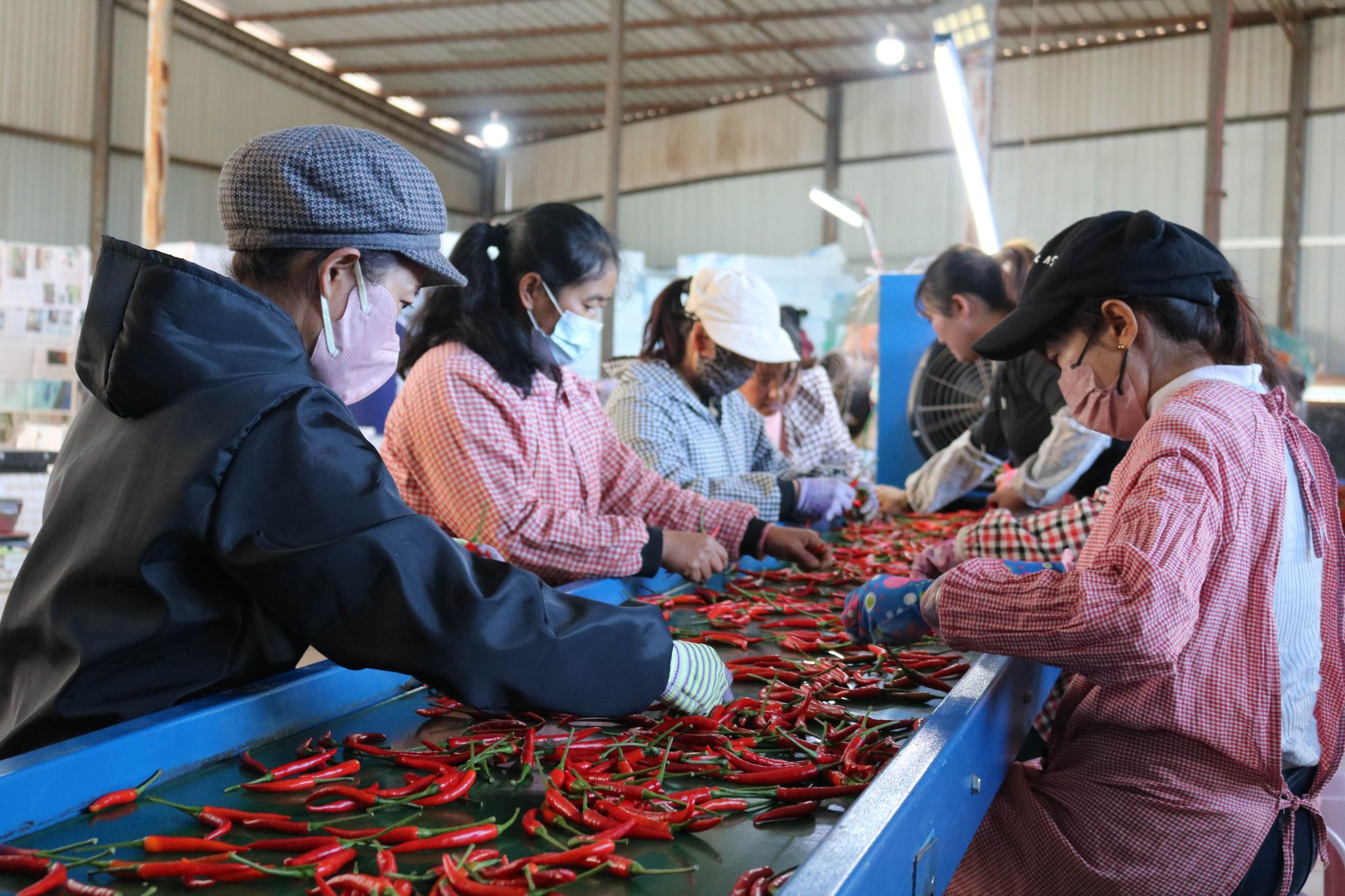 采收后的小米椒,农户交售给双柏永禾农业发展有限公司。从田间地头的即时收购,到信实健畜牧业交易市场的集中分拣、标准化打包,再通过物流专线发往重庆、广州等全国多个城市,形成了“田间采收—企业收购—集中包装—全国配送”的完整产销链条。目前,全镇每天平均交售小米椒30余吨,新鲜上市的妥甸小米椒凭借过硬品质,在外地市场颇受欢迎。