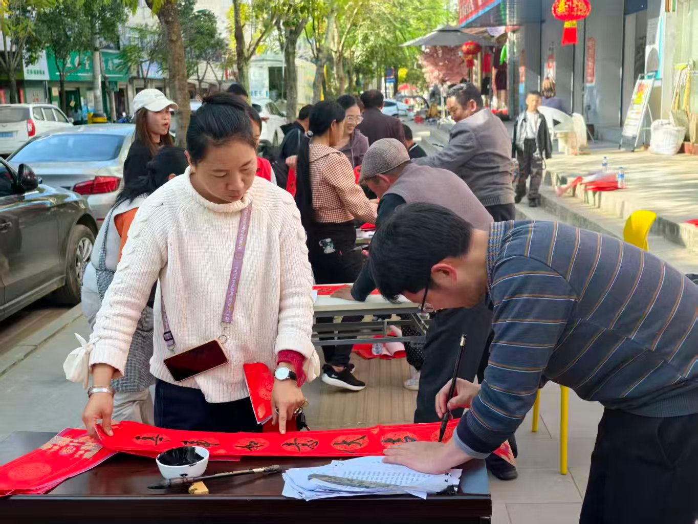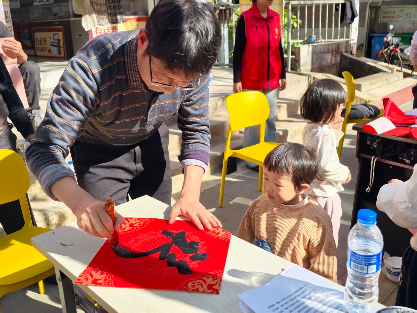 孩子们围在桌子旁,好奇地观摩笔墨流转,时不时发出阵阵赞叹;老人们看着志愿者手中刚写好的春联,细细品读联中寓意。“手写的春联更有年味,红红的联纸和浓浓的墨香,瞬间有了春节的喜庆氛围”,刚领到春联的王大哥捧着红联,连连为活动点赞。