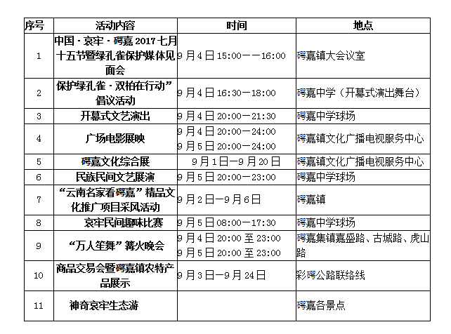 中国·哀牢·石咢嘉2017七月十五节活动日程表