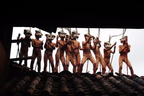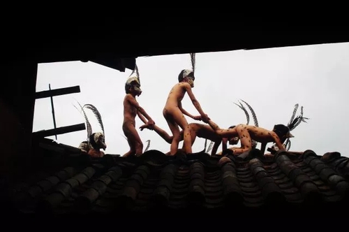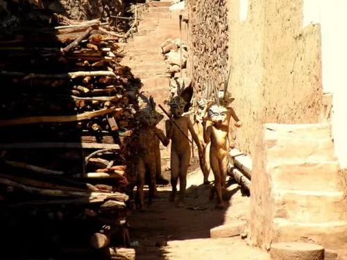 随后,小豹子们又来到野外的庄稼地里,模仿人类劳动生产场景,表演各种劳耕游戏。随着锣鼓声越来越密,他们转而跳起各种各样的兽类舞蹈,只见他们纷纷模仿豹子的爬行、格斗、嘶咬、交尾……意在撵鬼驱邪除害,祈求来年风调雨顺,五谷丰登,人畜兴旺。