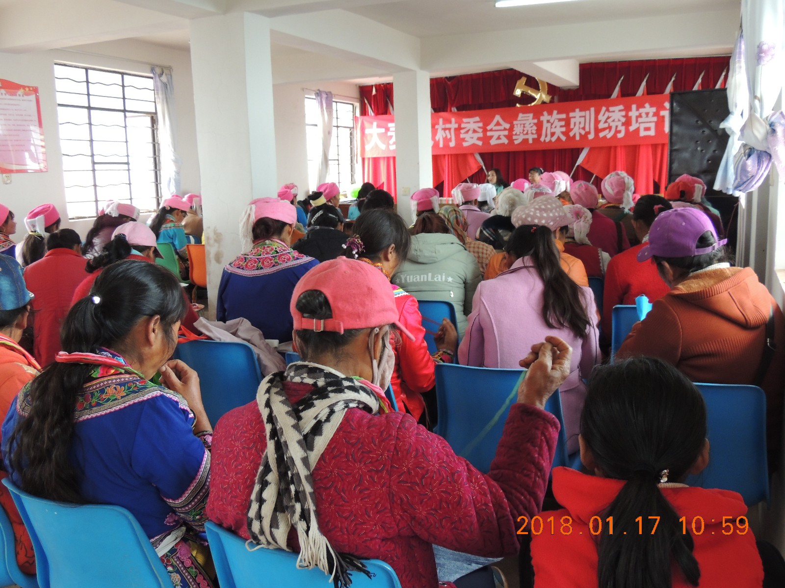 为进一步传承弘扬彝族刺绣文化,提高彝族妇女姐妹刺绣技艺,把彝绣产业发展成为农村妇女脱贫致富的一条新路子,2018年1月16日至18日,双柏县民宗局到大麦地镇底土村委会、大麦地村委会和安龙堡乡柏家河村委会举办彝族刺绣技能培训班。此次培训邀请了南华县老镇南刺绣协会副会长李文敏老师为参训学员讲授彝绣知识,来自两个乡镇的180名建档立卡贫困户妇女和彝族刺绣能手参加了此次培训。