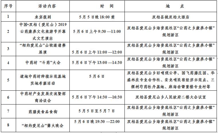 附:中国·双柏(爱尼山)2019云药康养文化旅游节活动日程表