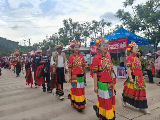 锣鼓铿锵、三弦悠扬,一场热闹的民俗巡演沿街展开。身着绚丽民族服饰的队伍,或手持民族乐器,或肩扛农耕器具,向街道两旁观众展示着彝族独有的风采与地域文化特色,所到之处皆是人头攒动、喝彩声连绵起伏。