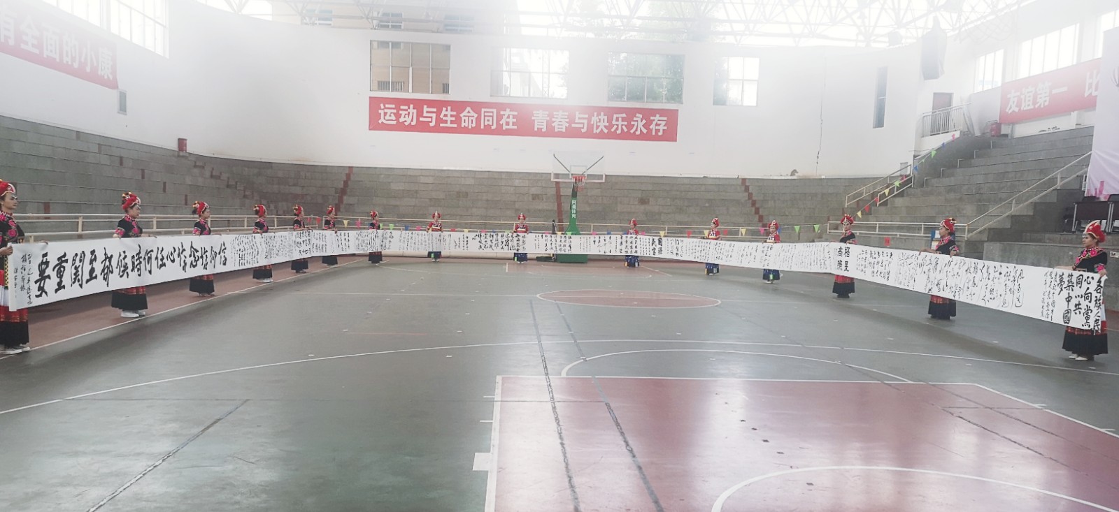 书画摄影展中,除展出常规作品外,还专门创作了彝汉双语百米书法长卷,书法长卷由南京大学著名书法家聂危谷、县内20多名书法爱好者共同完成,书法家们用汉语、彝语两种文字,撰写了毛主席诗词、习近平同志讲话摘要等内容。展览当天,县委书记李长平、县委副书记、县人民政府县长金鸿、县委副书记姚云来、县人大常委会主任李雪峰、县委常委、县委办公室主任王为周、县人民政府副县长王建富等领导同志到现场观看了展览。