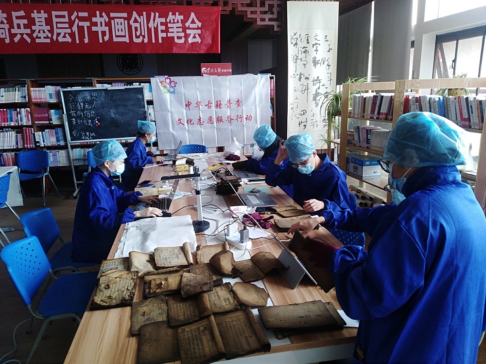7月18日,云南省图书馆2021“中华古籍普查文化志愿服务行动•云南行”双柏小分队如同往常一样,在清早步行一公里来到双柏文化馆进行彝文古籍普查工作。与以往不同的是,随着彝文古籍记录工作逐渐熟悉、进度不断推进,小组一致决定在中午放弃休息时间,转赴双柏图书馆,在整理彝文古籍的间隙同时开展双柏汉文古籍的普查工作。