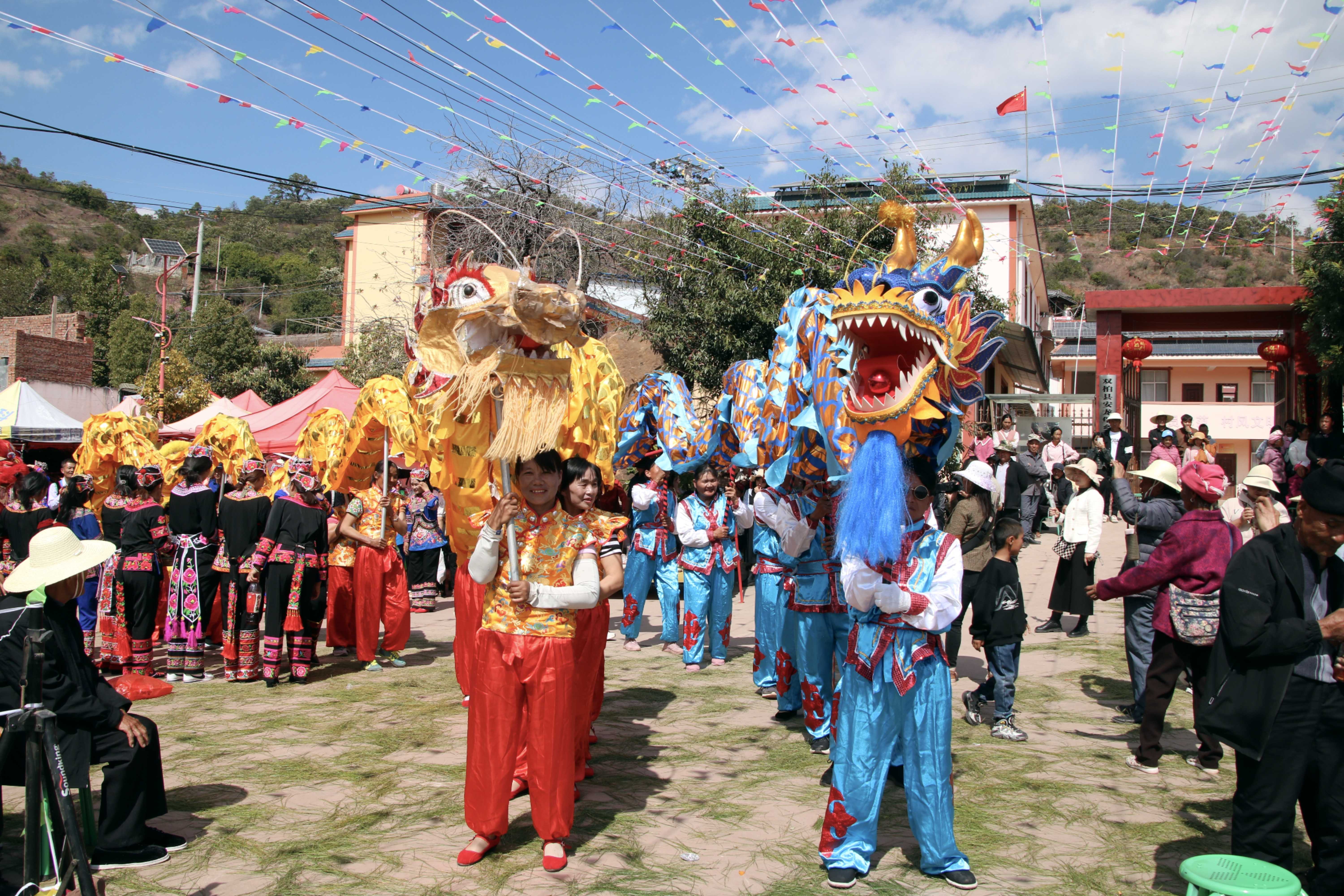 灯笼悬挂,彩旗飘飘,热闹的花鼓打起来,欢快的长龙舞起来,彝家儿女身着色彩鲜艳的彝族盛装,唱着动听的彝家小调迎接远道而来的客人,说全村一派喜庆祥和、热闹非凡的景象。
