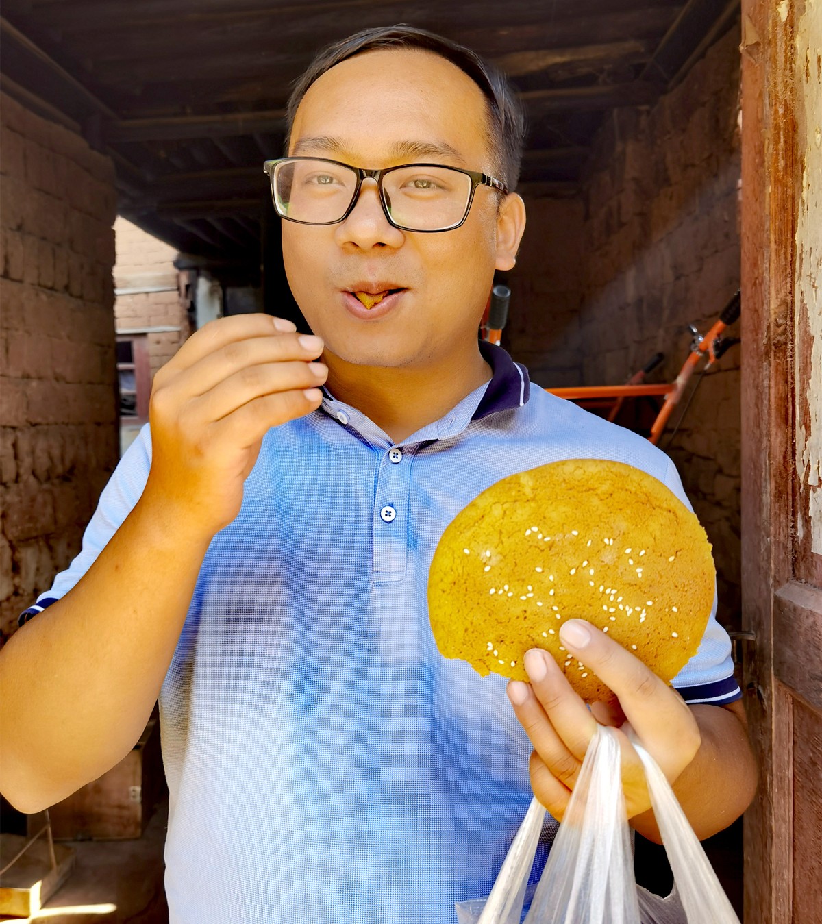 烤好的粑粑色泽金黄、入口松软、香甜不腻,掺入香料的更是回味无穷,有暖胃保健的功效。虽然没有馅料,外形也并不如市场上的月饼精致可口,但底土粑粑因原生态、纯手工、无添加而受到外界的欢迎,需求也逐步增加,从最初的自产自销到现在的远销各地,凝聚了彝族先民的勤劳和智慧的底土粑粑成为了大麦地镇的特色食物代表之一,从大山深处也走向了外界,被更多的人品尝和青睐。