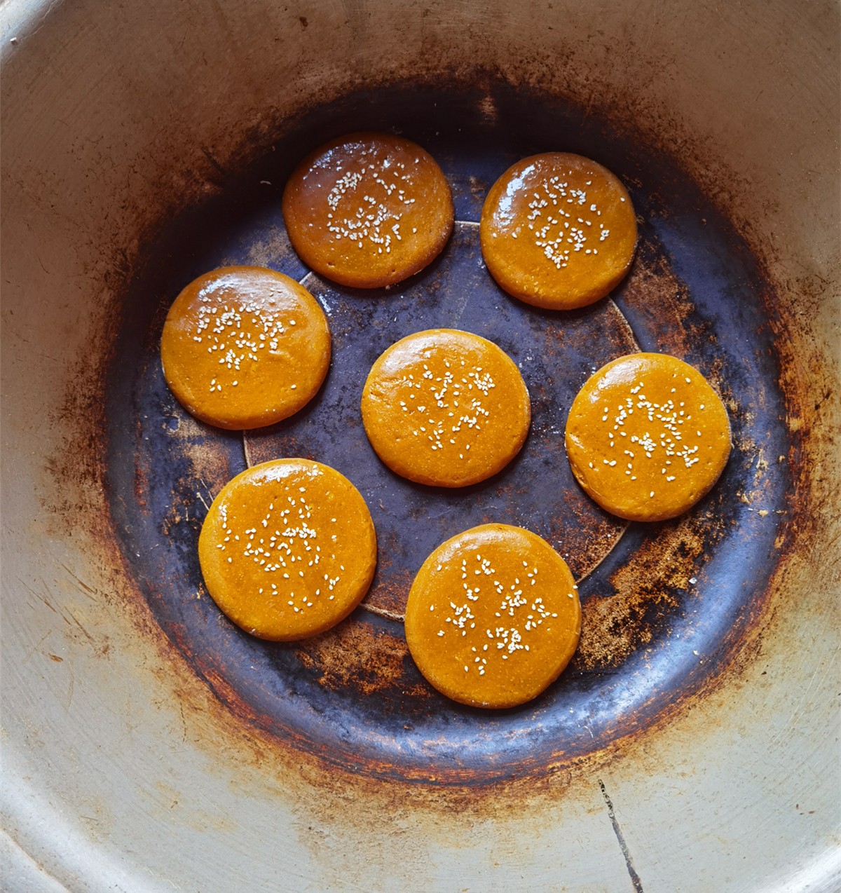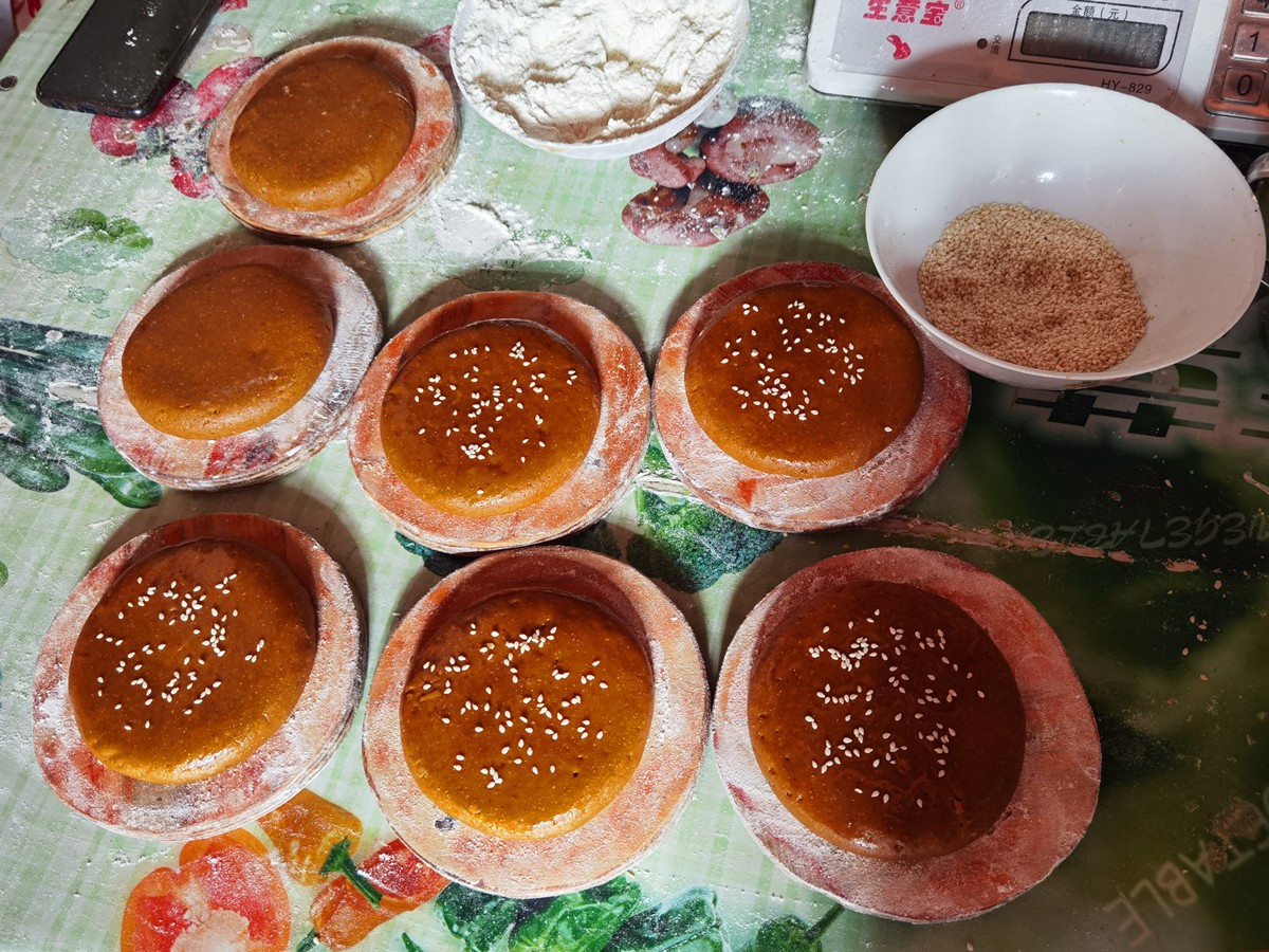 塑成统一形状,刷上红糖糖浆,撒上芝麻