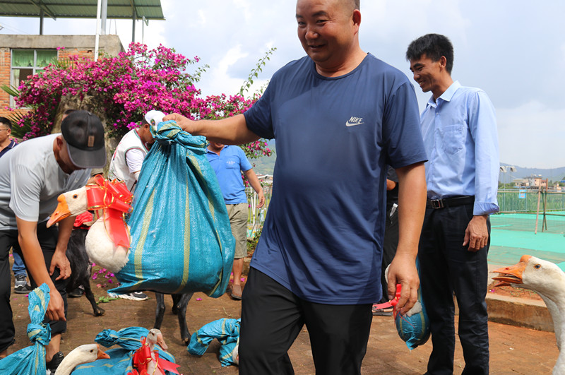 颁奖现场,热闹非凡,获奖商家脸上洋溢着喜悦的笑容,本地壮黄牛、黑山羊、密架山猪、大鹅皆为(石咢)嘉特色养殖农产,这份来自土地的馈赠,是对商家辛劳付出最好的奖励。