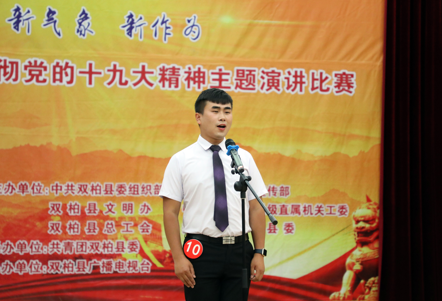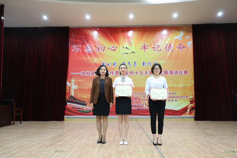 为深入学习贯彻习近平新时代中国特色社会主义思想和党的十九大精神,培育和践行社会主义核心价值观,5月15日,双柏县举行以“新时代 新气象 新作为 不忘初心、牢记使命”为主题的学习宣传贯彻党的十九大精神主题演讲比赛,充分发挥演讲比赛在思想道德宣传教育品牌中的作用,进一步在全县掀起学习宣传贯彻党的十九大精神的热潮。