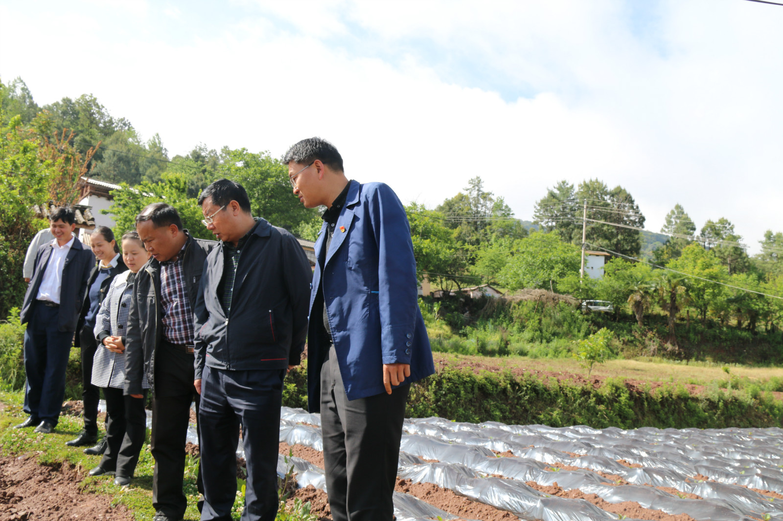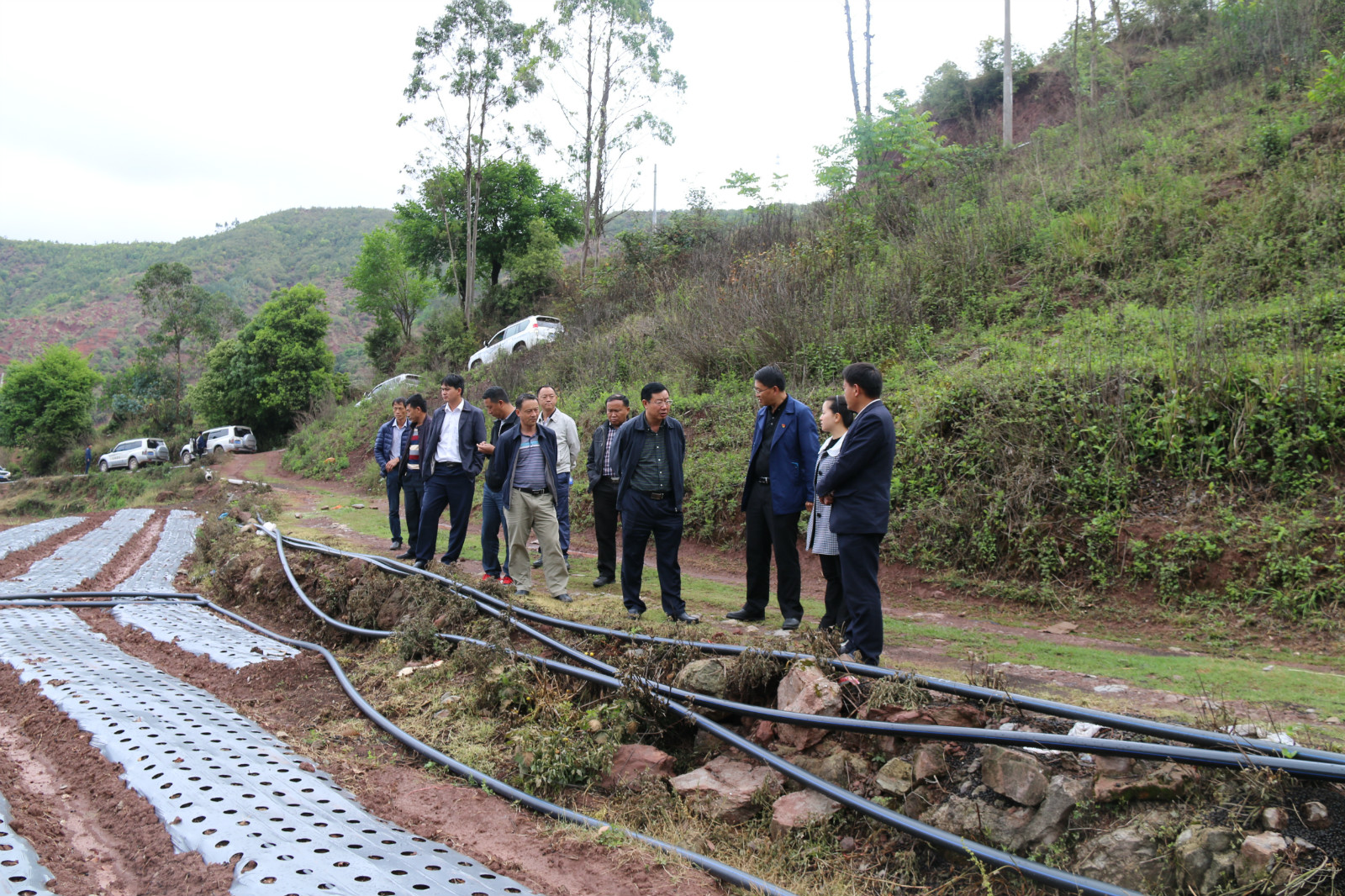 在雨龙村委会月牙埂村,实地调研烤烟移栽情况,要求抢抓节令,加快烤烟移栽进度,确保按时间节点完成移栽。
