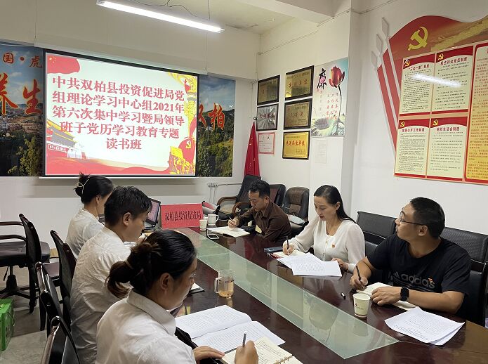 为深入学习贯彻习近平总书记关于学习党史重要论述和习近平总书记在庆祝中国共产党成立100周年大会上的重要讲话精神,以及省委省政府楚雄现场办公会、县委李长平书记在县委常委班子党史学习教育专题读书班上所作的辅导报告精神,2021年7月26日至27日,双柏县投资促进局党组举办理论学习中心组2021年第六次集中学习暨领导班子党史学习教育专题读书班。