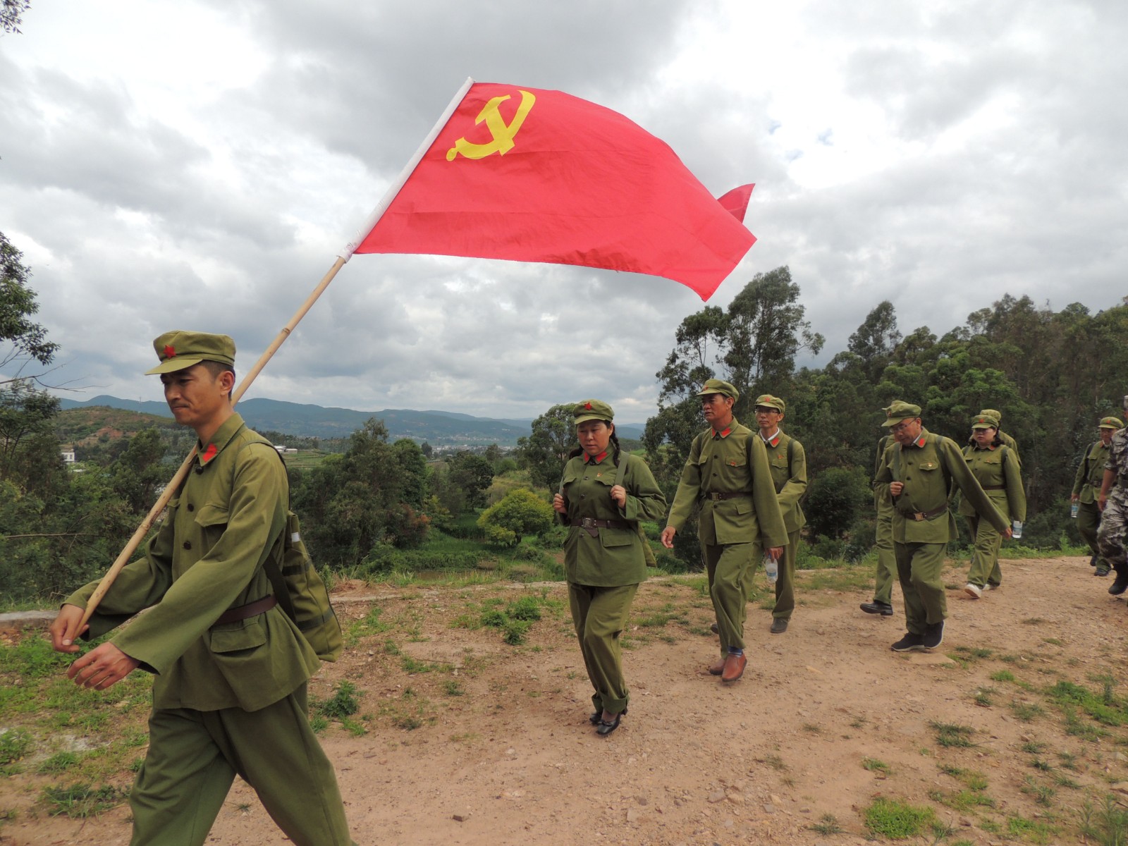 在楚雄市子午镇红色教育基地,全体同志穿上军装,肩负“军粮”,在党旗的指引下,踏着1950年“征粮干部”的脚印,重走当年征粮工作队员走过的征粮路,一路聆听讲解员讲述1950年5月在征粮剿匪和云龙保卫战中牺牲的光辉事迹,体验征粮工作队的艰苦卓绝,学习革命先辈为党和人民不怕牺牲、顽强拼搏的精神。