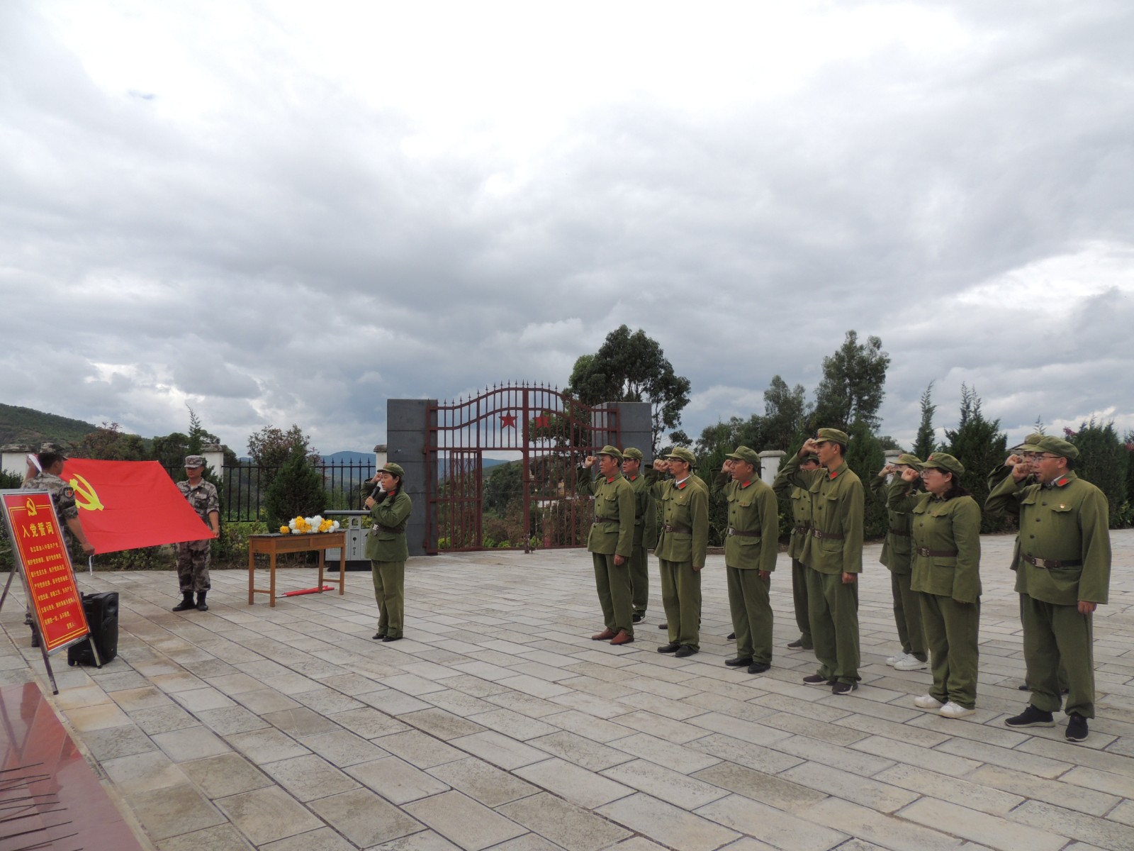 走完征粮路,在基地教官的带领下来到云龙烈士陵园、云龙烈士纪念馆,深切缅怀1950年双柏县征粮剿匪战斗中英勇牺牲的28位革命先烈。在烈士纪念碑前,开展纪念革命先烈祭扫活动,全体参加人员在烈士纪念碑前列队肃立、奏唱国歌、敬献菊花、行鞠躬礼、脱帽默哀,全体人员在李冬梅局长的领誓下重温入党誓词。