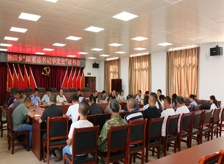 为庆祝中国共产党成立100周年,推进党史学习教育,7月14日下午,独田乡举办“跟着总书记学党史”读书会。党政班子成员,乡机关全体干部职工,县级垂管站所负责人,各村(社区)党总支书记共计50余人参加。