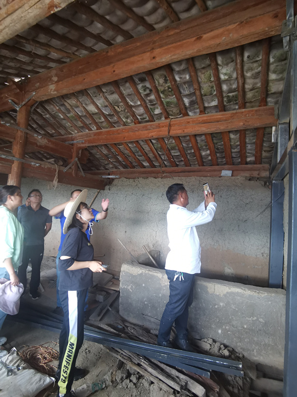 (实地查看受损民房恢复建设情况、详细进行记录)