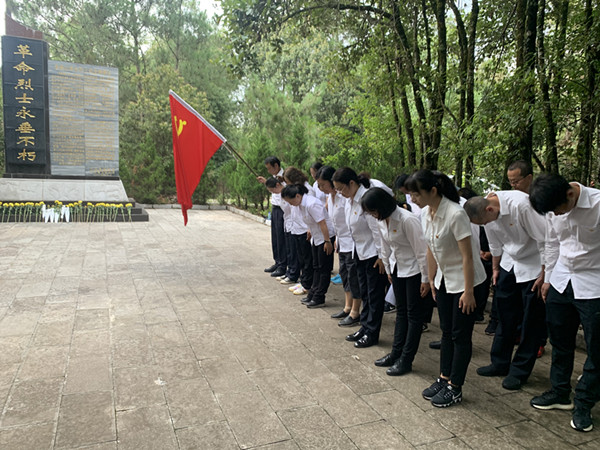 全体干部职工向革命烈士三鞠躬,党员们怀着无比崇敬的心情,肃穆默哀,深切悼念为革命事业前赴后继、英勇献身的革命烈士,表达对他们的哀思之情。并绕着烈士纪念碑缓步前行,瞻仰烈士纪念碑,追忆先烈。