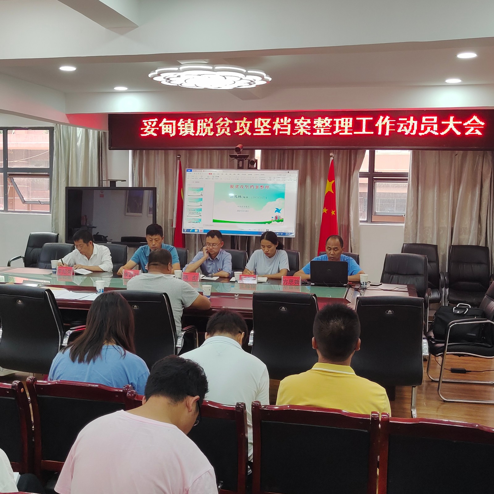 为了规范收集整理和保存脱贫攻坚档案资料,妥甸镇于2021年7月13日下午两点三十分在妥甸镇大会议室召开了2021年妥甸镇脱贫攻坚档案整理工作动员大会。县委办公室副主任、县委国安办常务副主任李昌益、县乡村振兴局工作人员李绍荣、镇党委副书记蒋彪、副镇长王婷婷及扶贫办公室全体人员,各村(居)委会副主任文书及培训老师等共计31人参加,会议由镇党委副书记蒋彪主持。