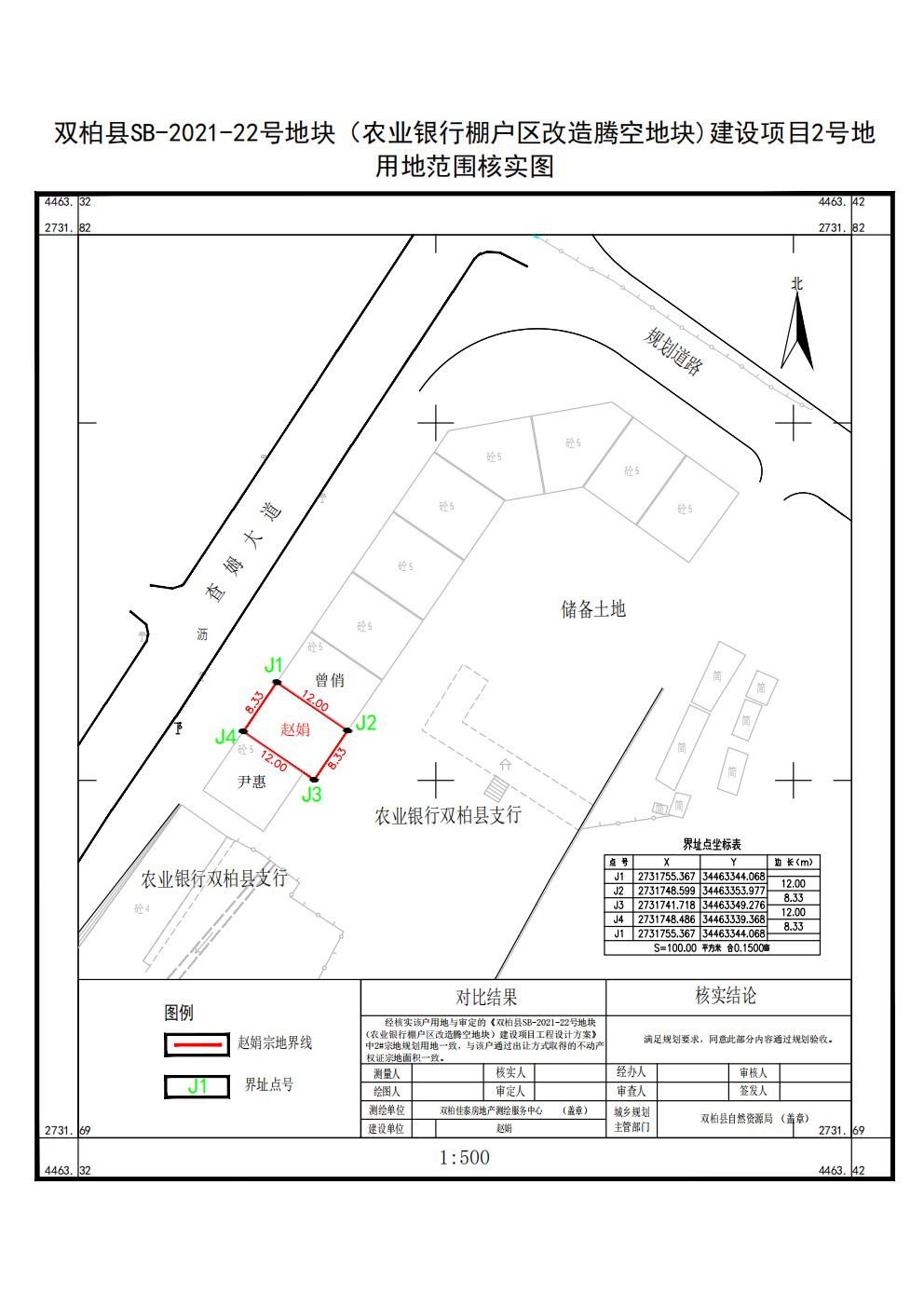 附件内容:1.双柏县SB-2021-22地块(农业银行棚户区改造腾空地块)建设项目2号地用地范围核实图;