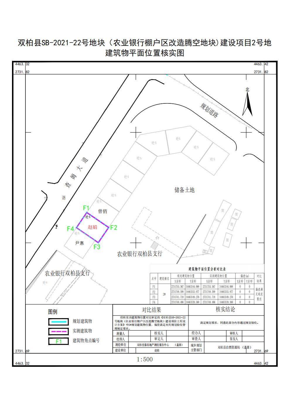 2.双柏县SB-2021-22地块(农业银行棚户区改造腾空地块)建设项目2号地建筑物平面位置核实图。