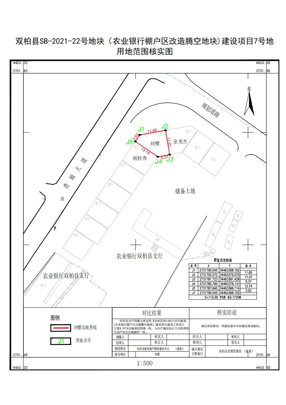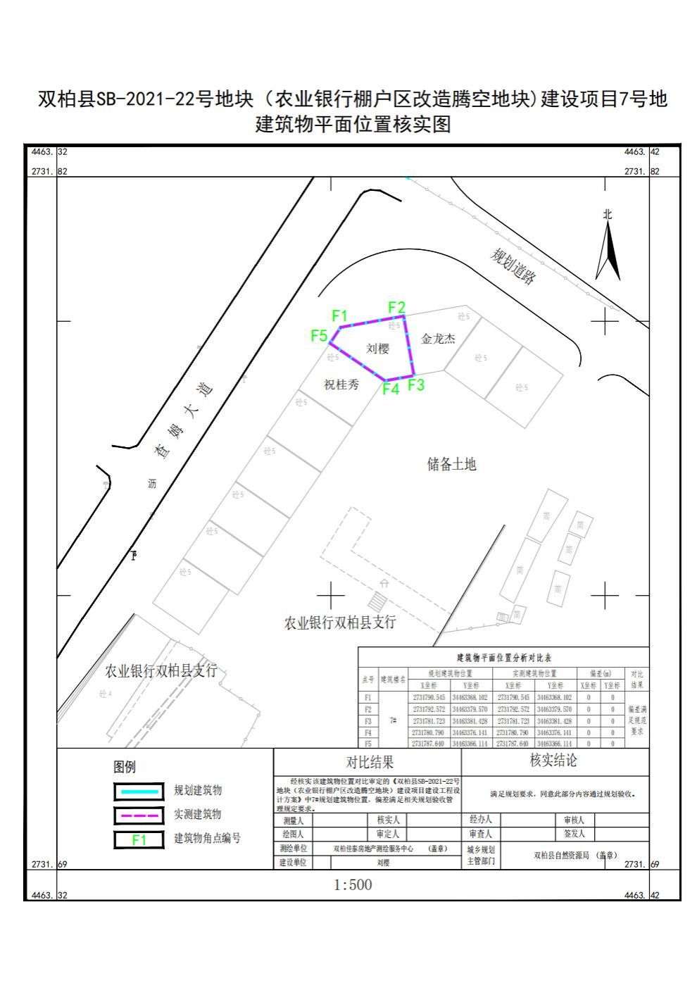 2.双柏县SB-2021-22地块(农业银行棚户区改造腾空地块)建设项目7号地建筑物平面位置核实图;