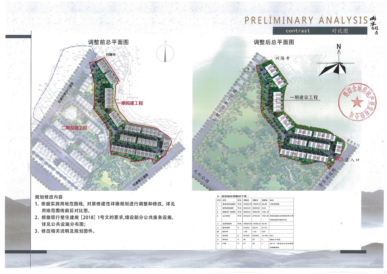 附件:拟申请规划修改内容、总平面对比图、公共设施图、范围线前后对比图